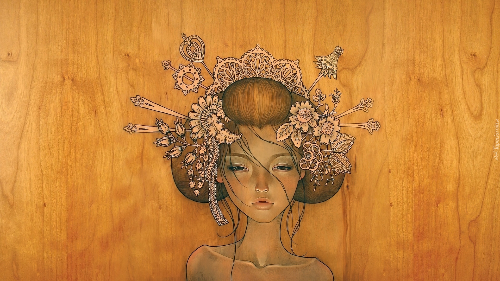 Edytor tapety: Kobieta, Kwiaty, Fryzura, Deski