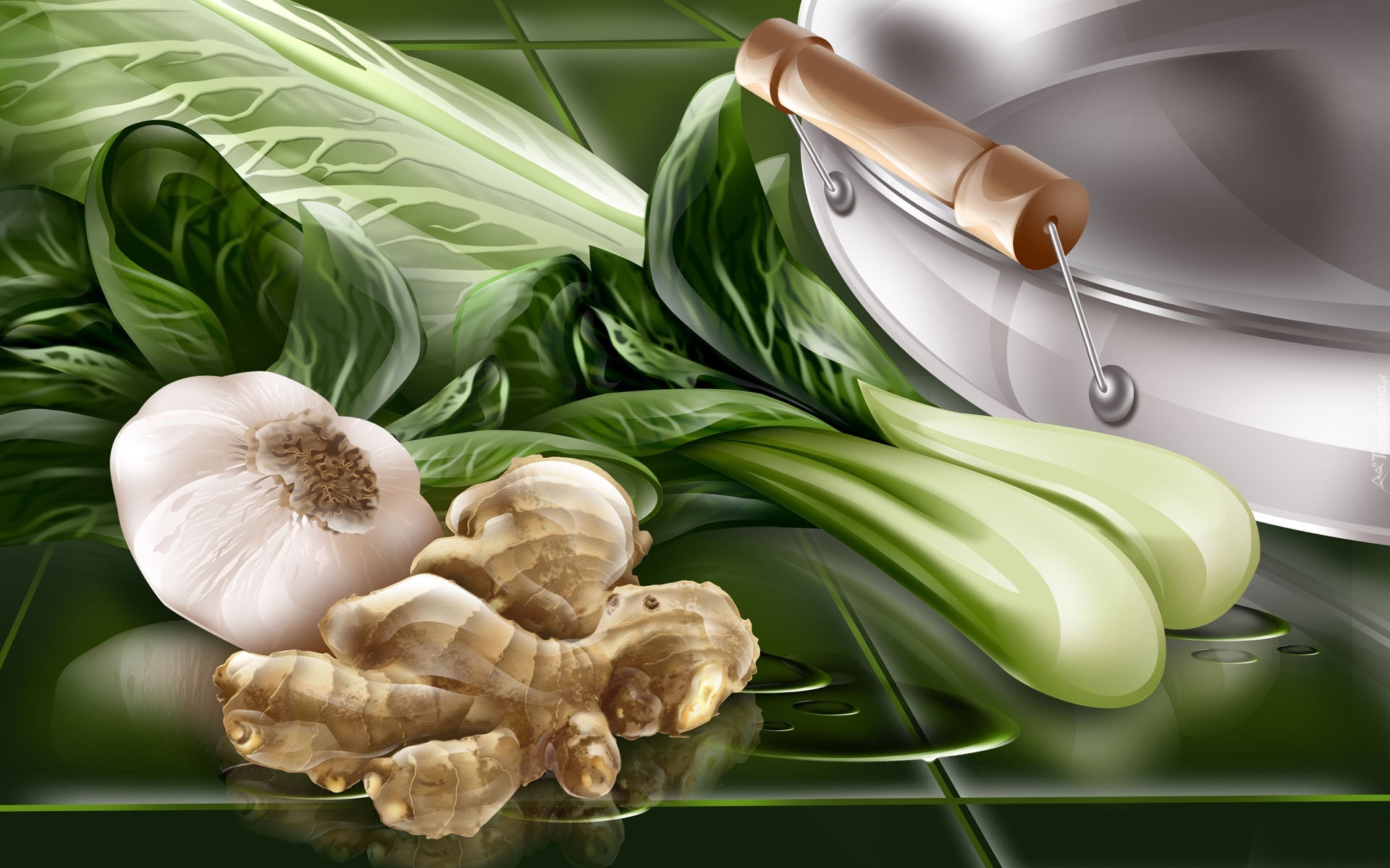 Edytor tapety: Czosnek, Warzywa, Garnek, Woda