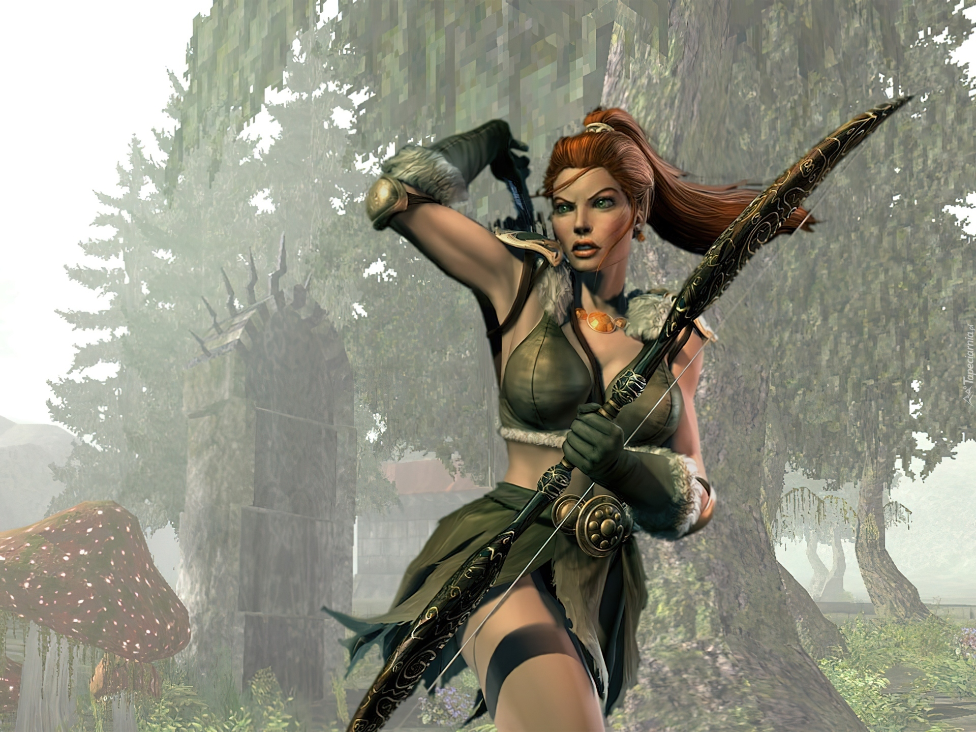 Edytor tapety: Dziewczyna, Łuk, Strzały, Drzewa