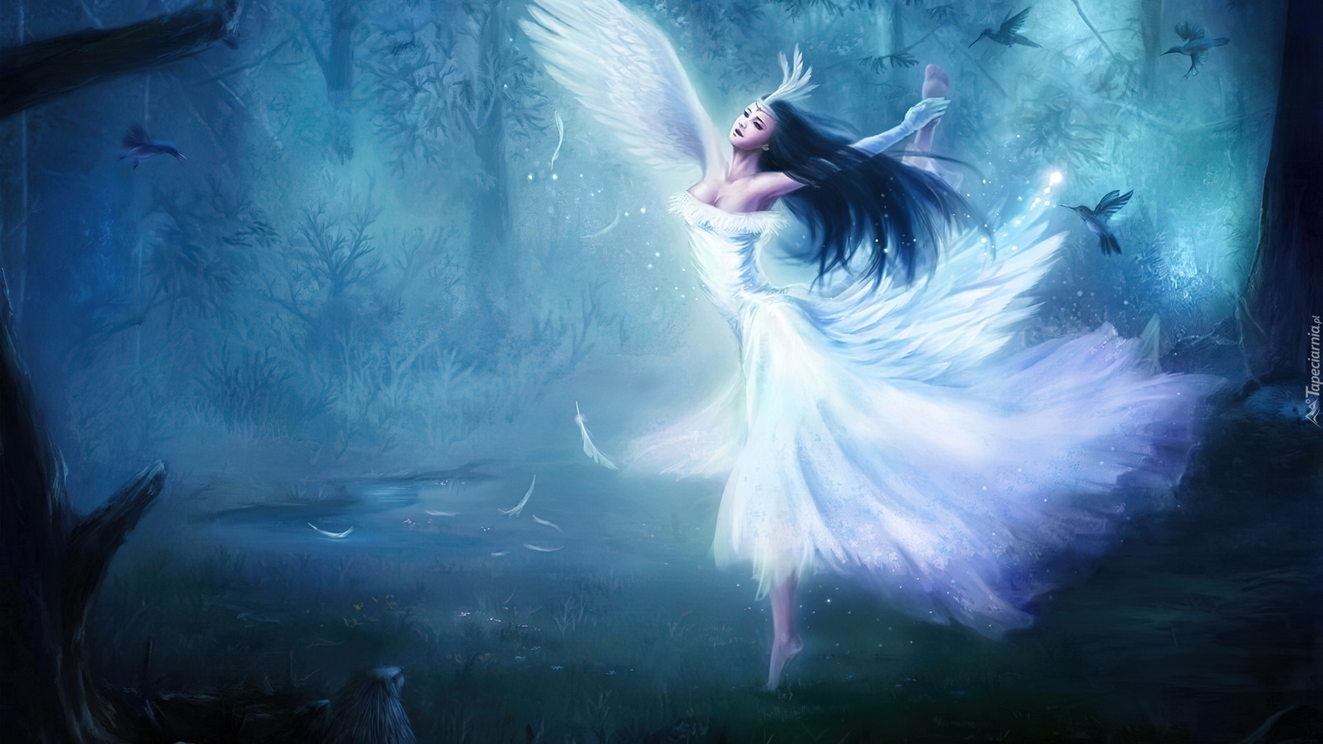 Edytor tapety: Kobieta, Anioł, Taniec, Las