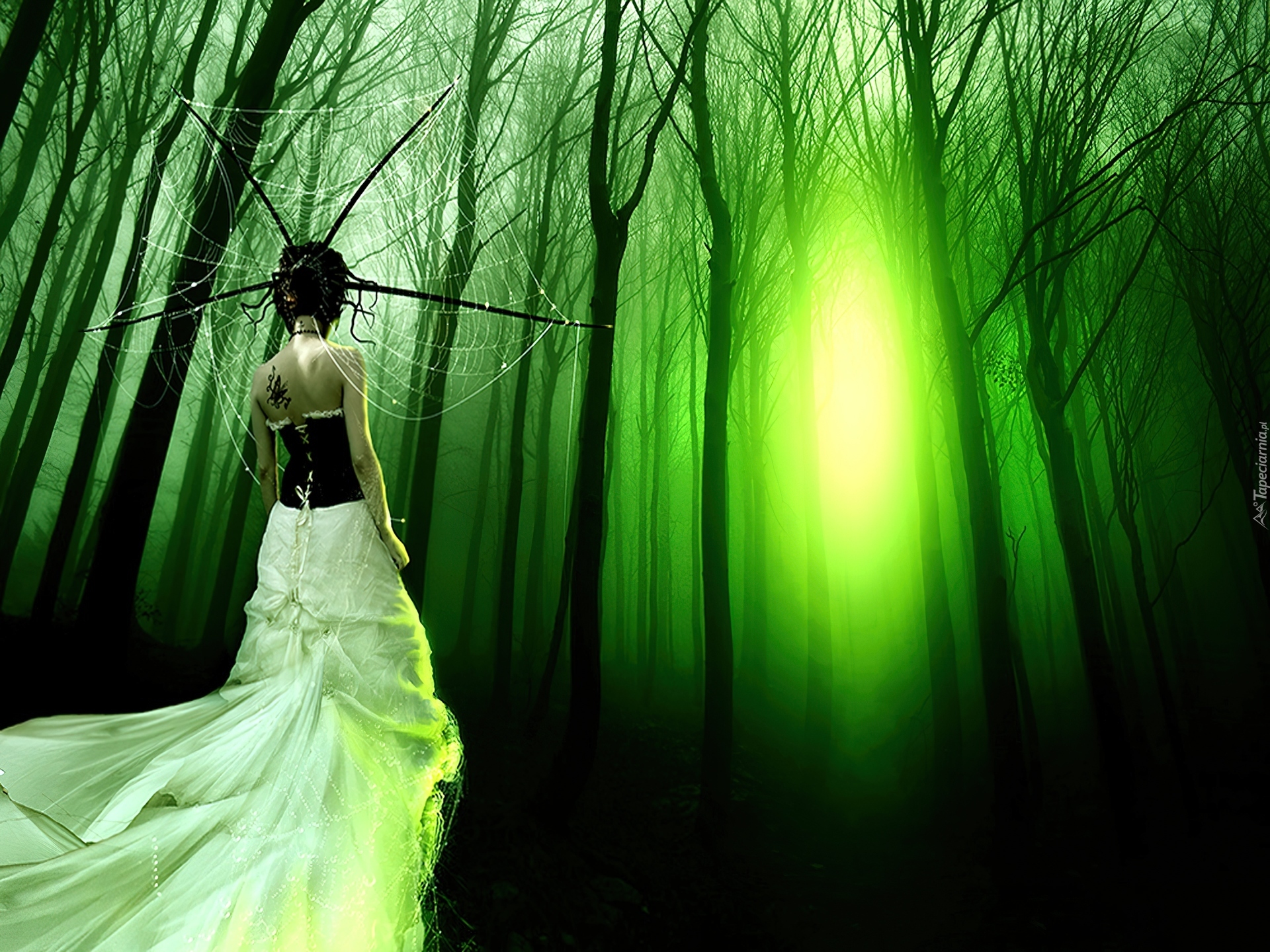 Edytor tapety: Kobieta, Pajęczyna, Tatuaż, Las