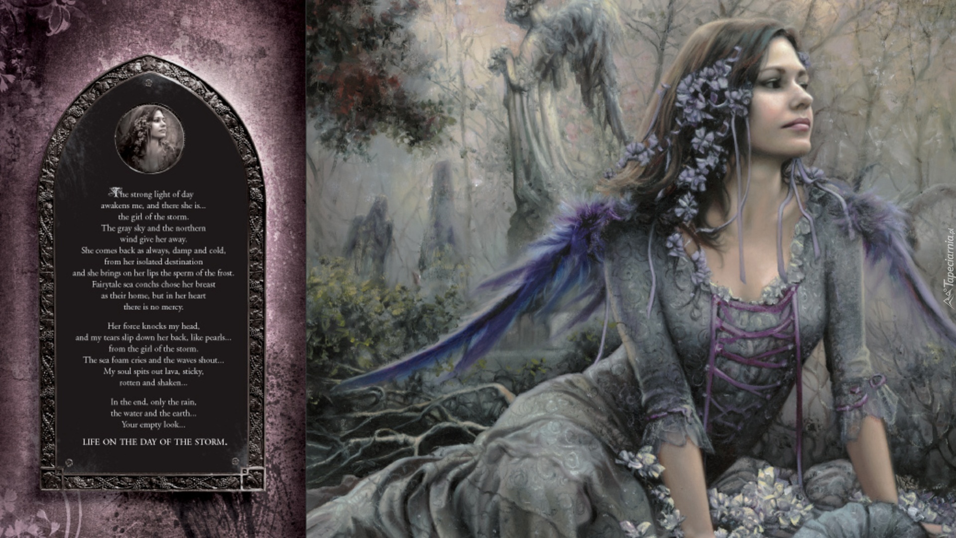 Edytor tapety: Kobieta, Kwiaty, Pióra, Pomnik