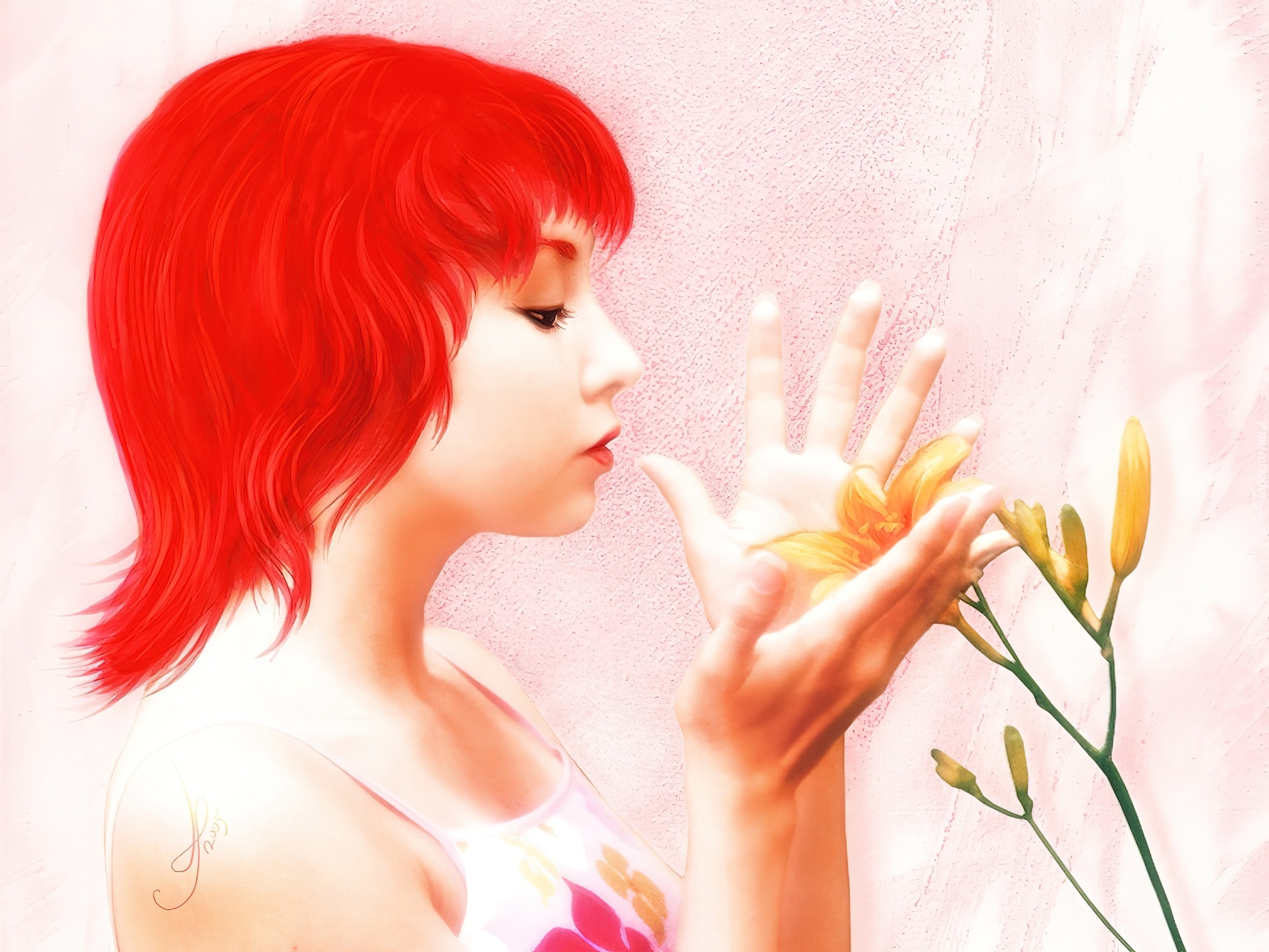Edytor tapety: Dziewczyna, Dłonie, Kwiatek