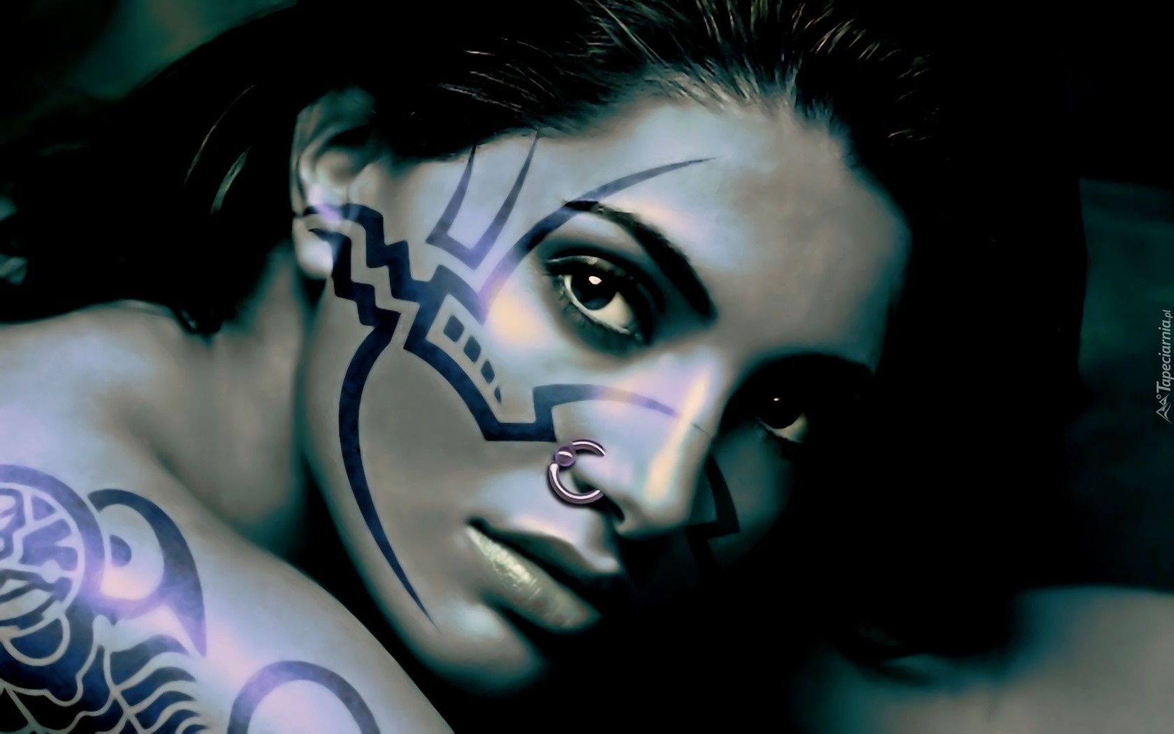 Edytor tapety: Kobieta, Tatuaże, Kolczyk