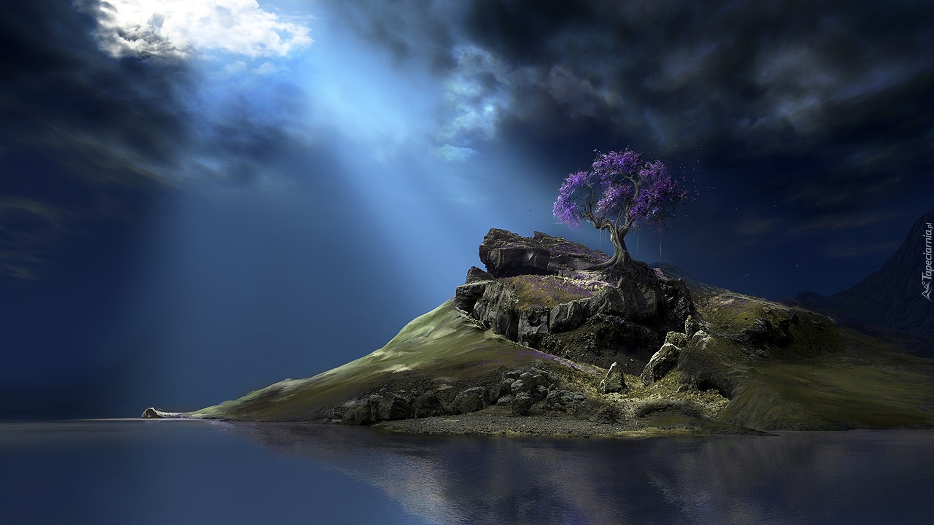Edytor tapety: Jezioro, Góra, Drzewo, Chmury