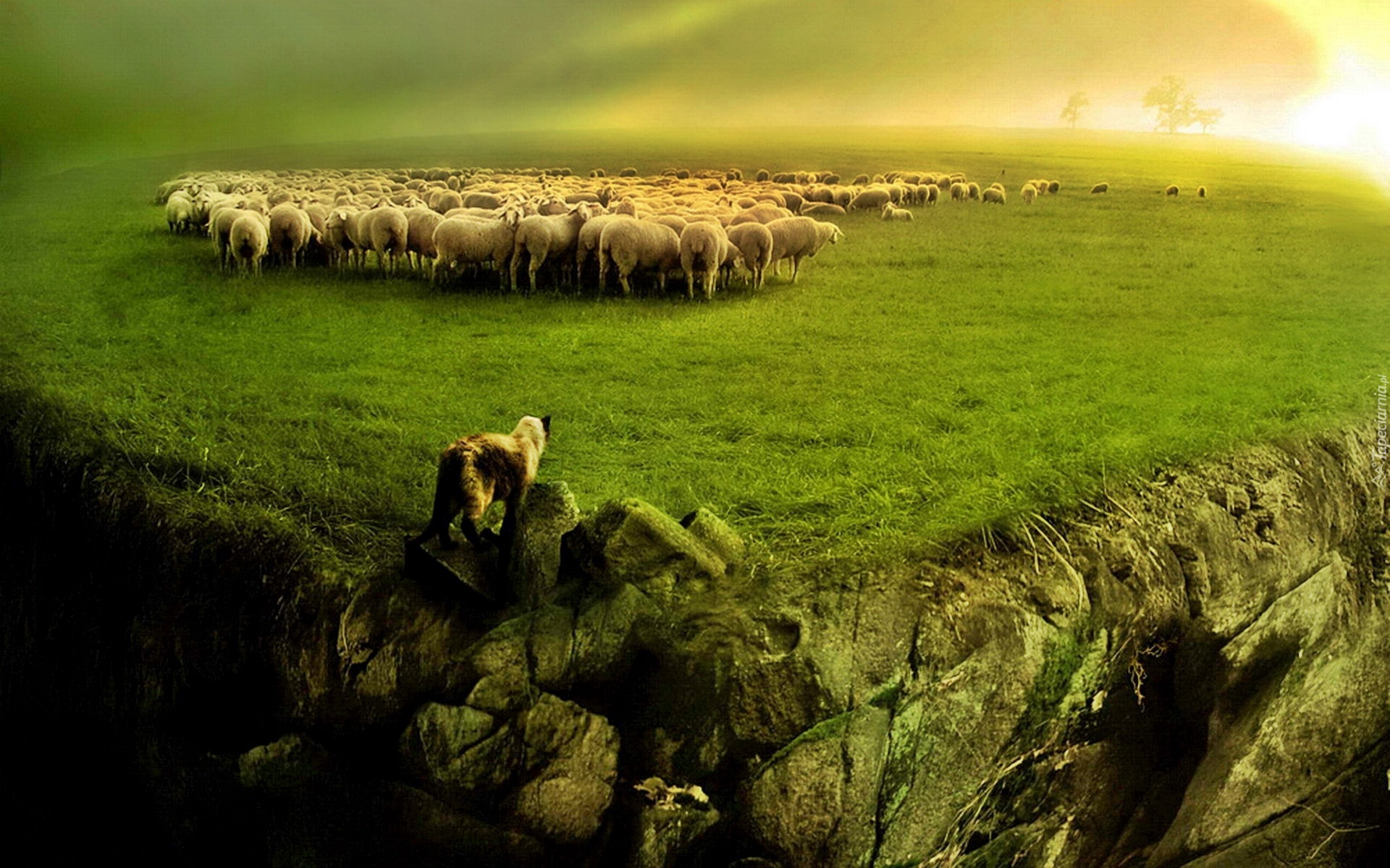 Edytor tapety: Owce, Stado, Wilk