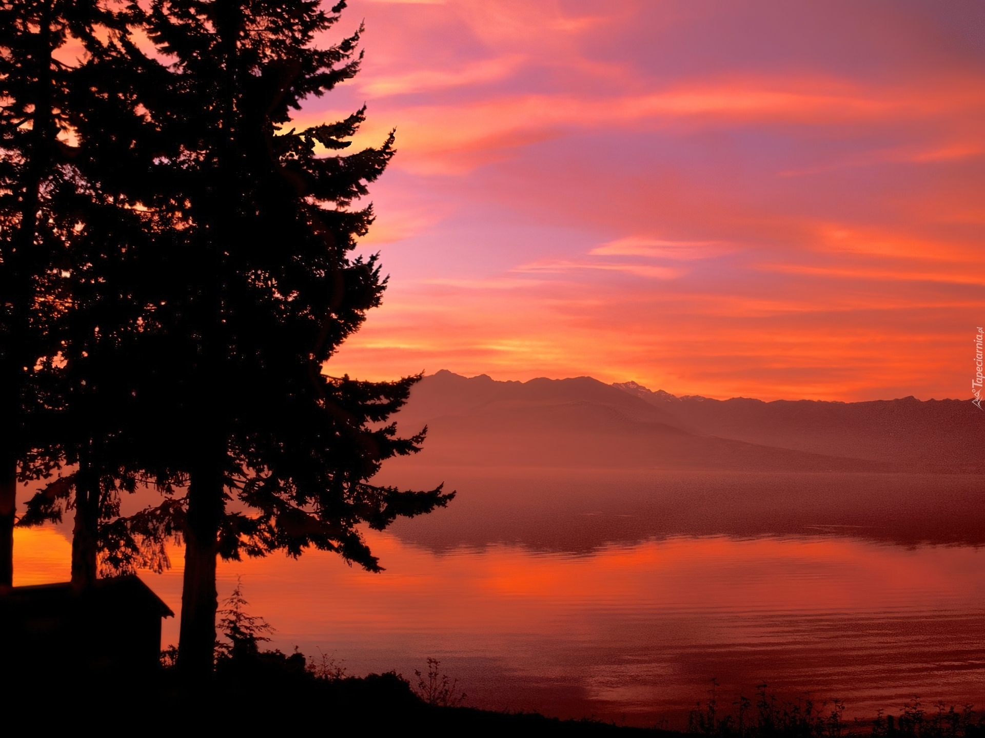 Edytor tapety: Jezioro, Drzewa, Wieczór