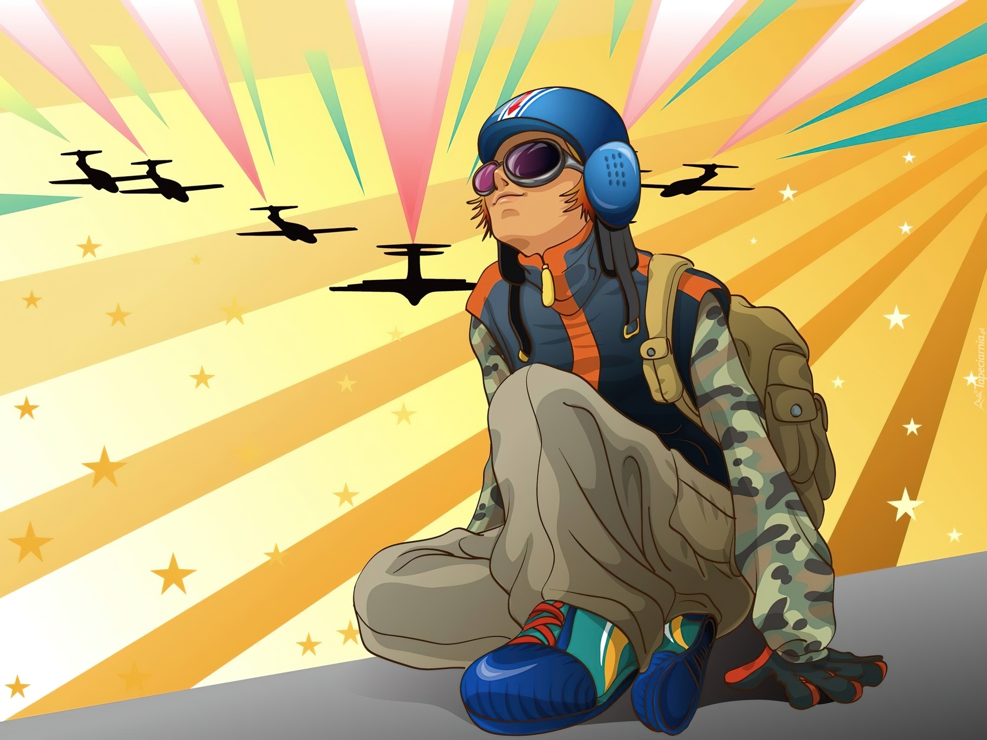 Edytor tapety: Chłopak, Słuchawki, Samoloty