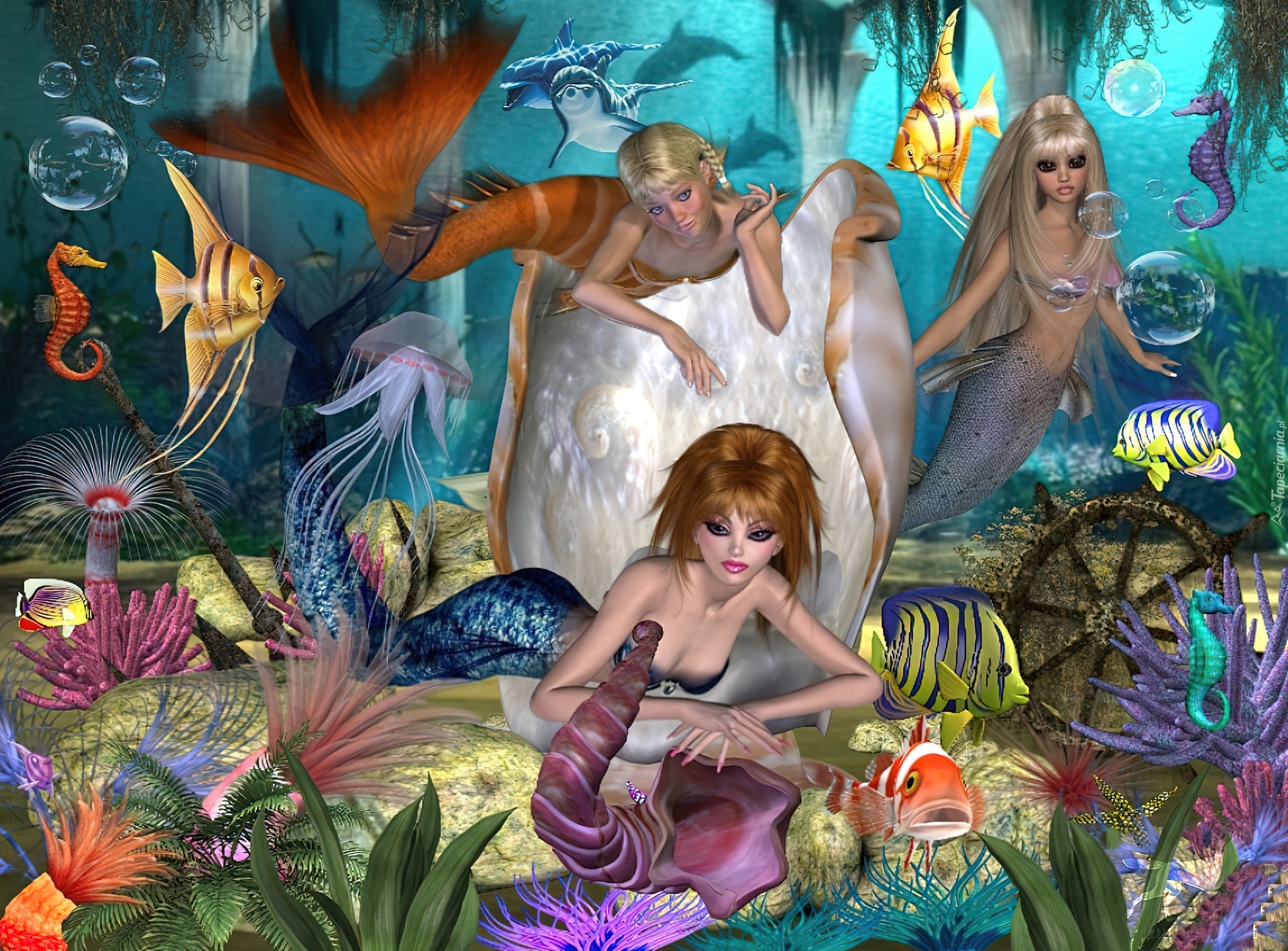 Edytor tapety: Syrenki, Dno, Morskie, Fantasy