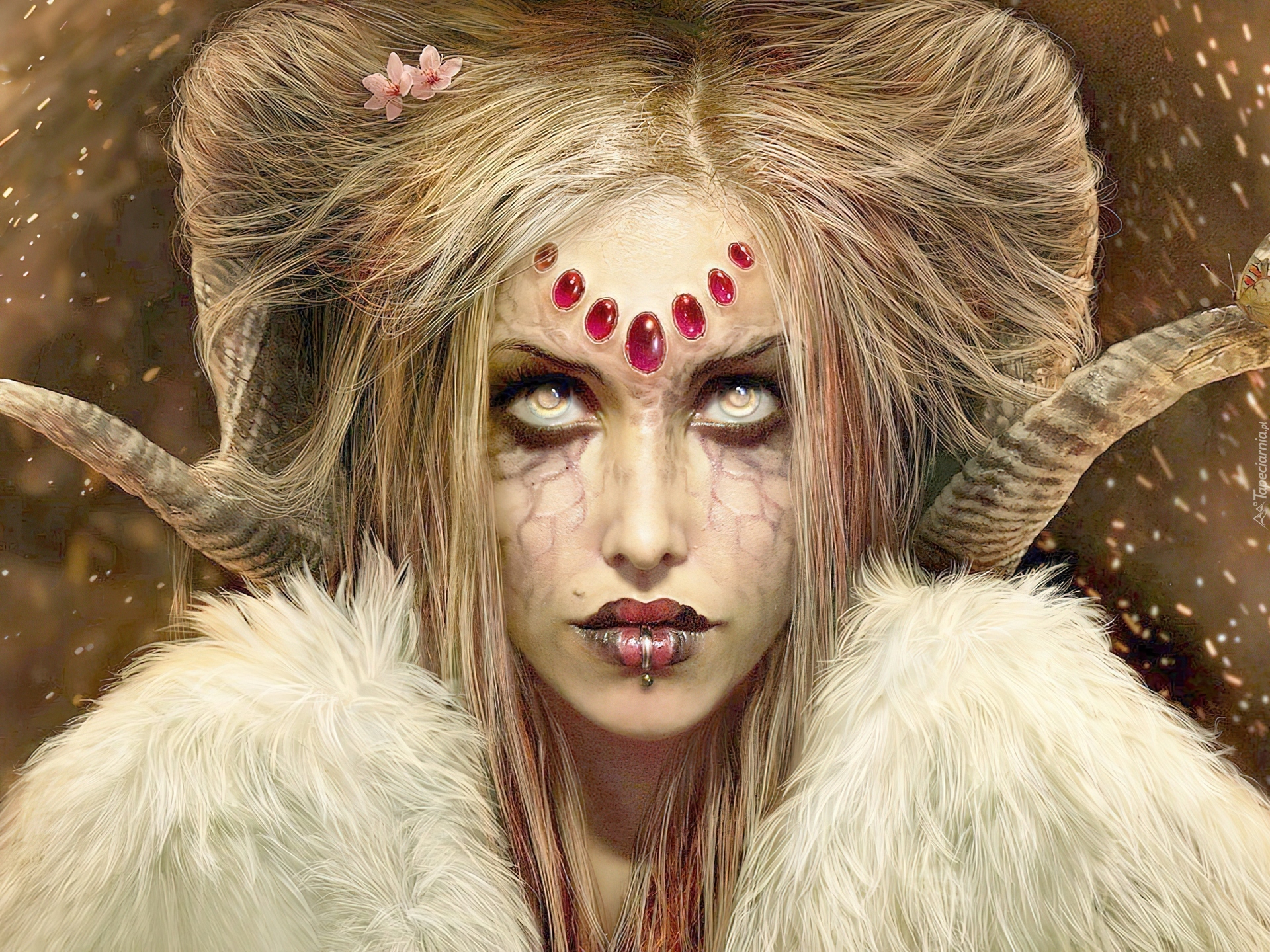 Edytor tapety: Kobieta, Rogi, Rubiny, Kolczyk