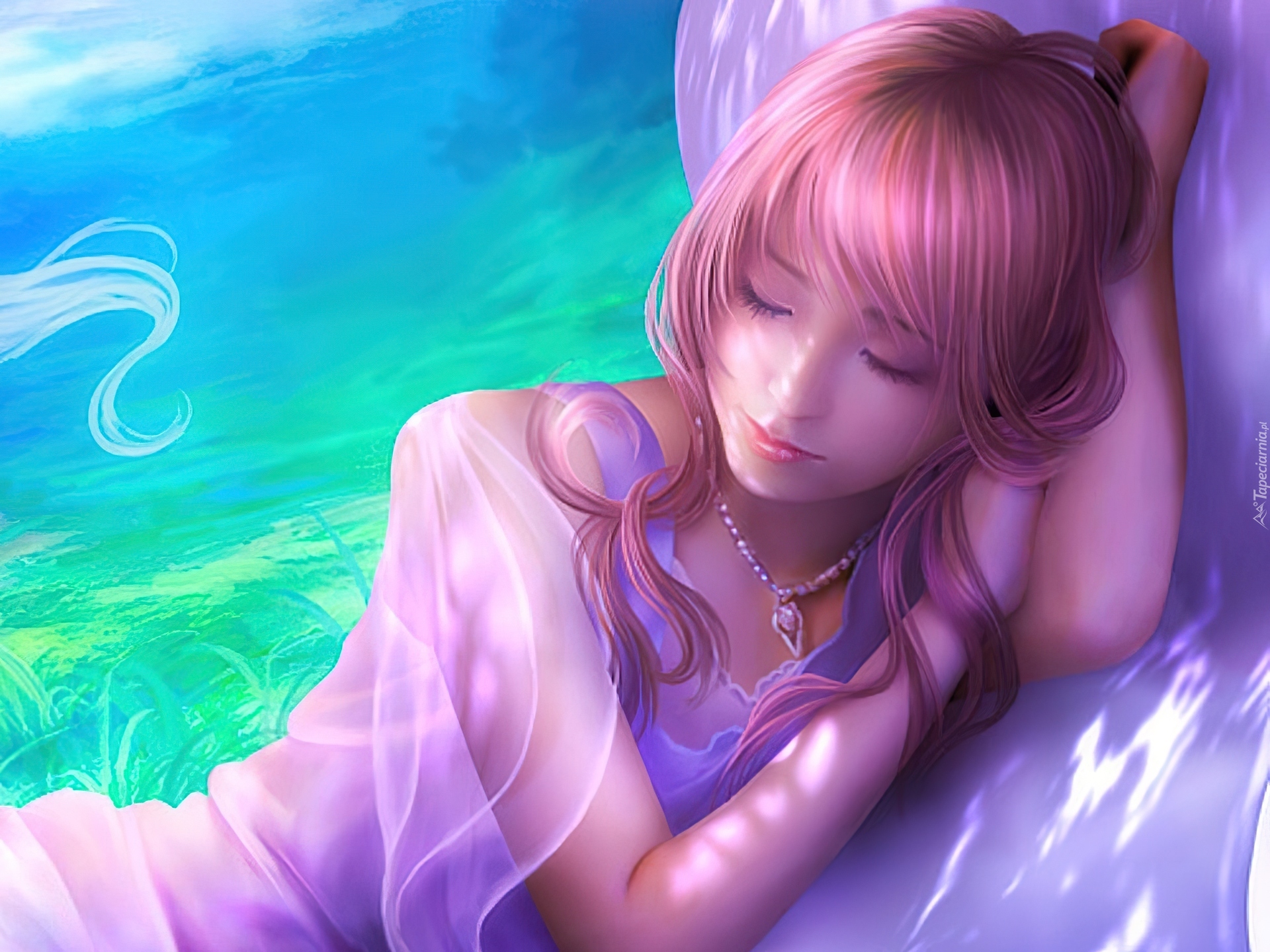 Edytor tapety: Zmęczona, Dziewczyna, Naszyjnik, Niebo