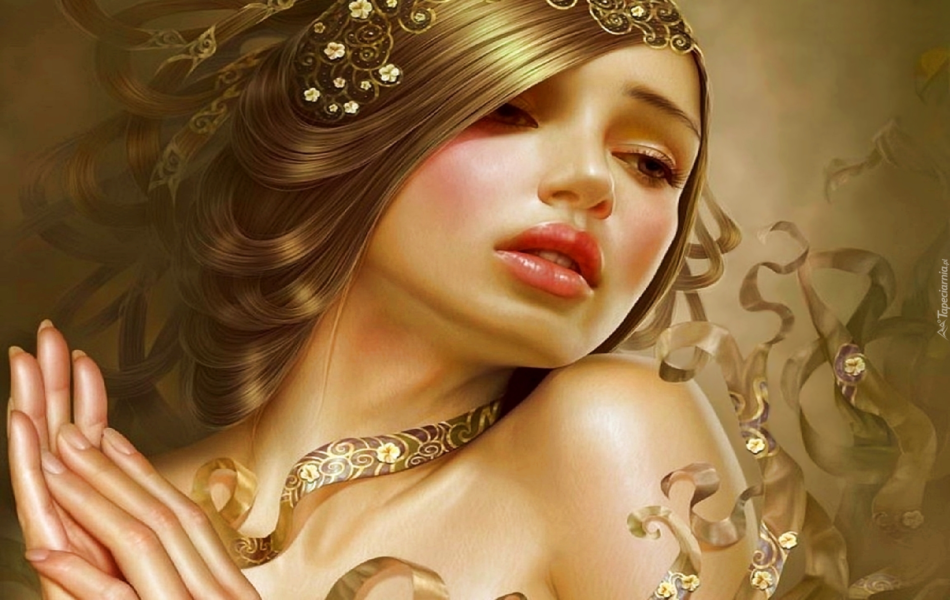 Edytor tapety: Dziewczyna, Dłonie, Kwiaty, Wstążka