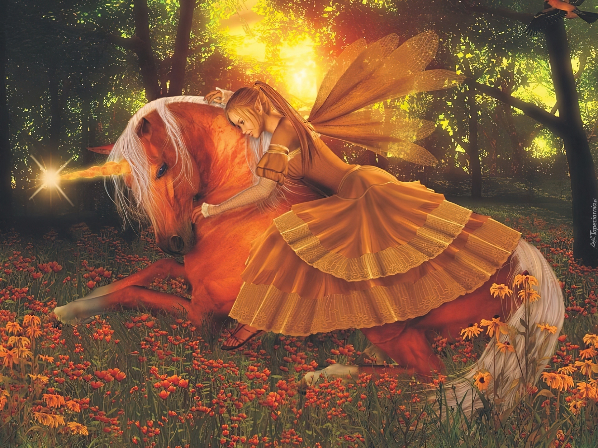 Edytor tapety: Dziewczyna, Motyl, Jednorożec, Las