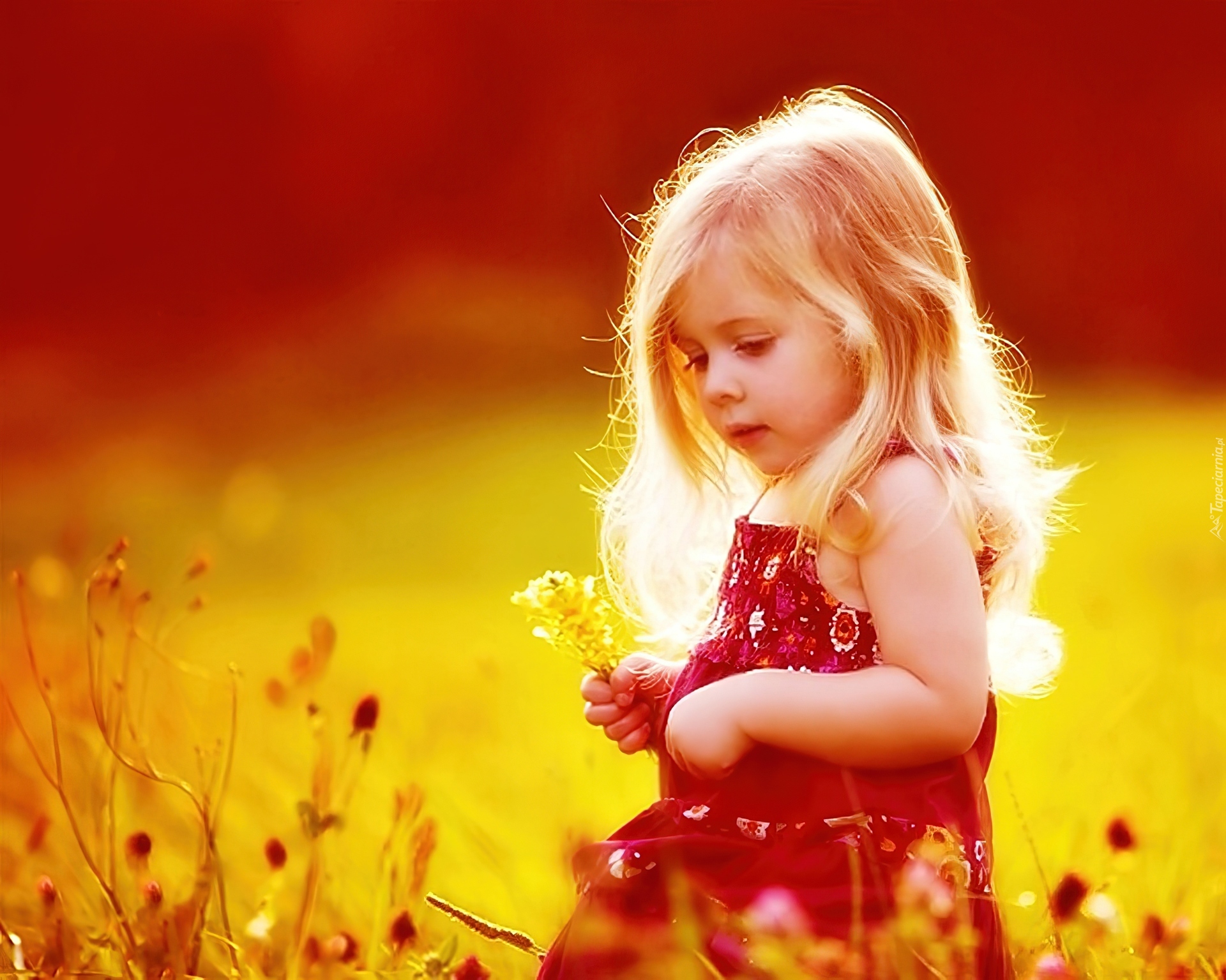 Edytor tapety: Dziewczynka, Spacer, Łąka