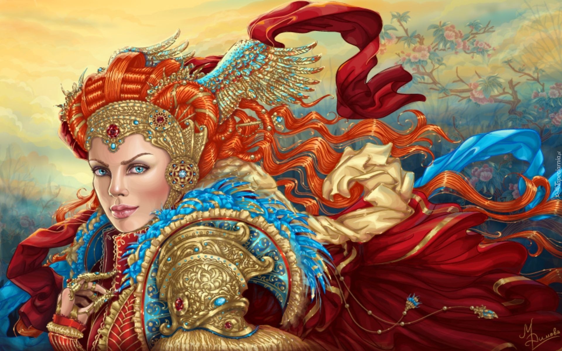 Edytor tapety: Kobieta, Zbroja, Kolorowe, Szarfy