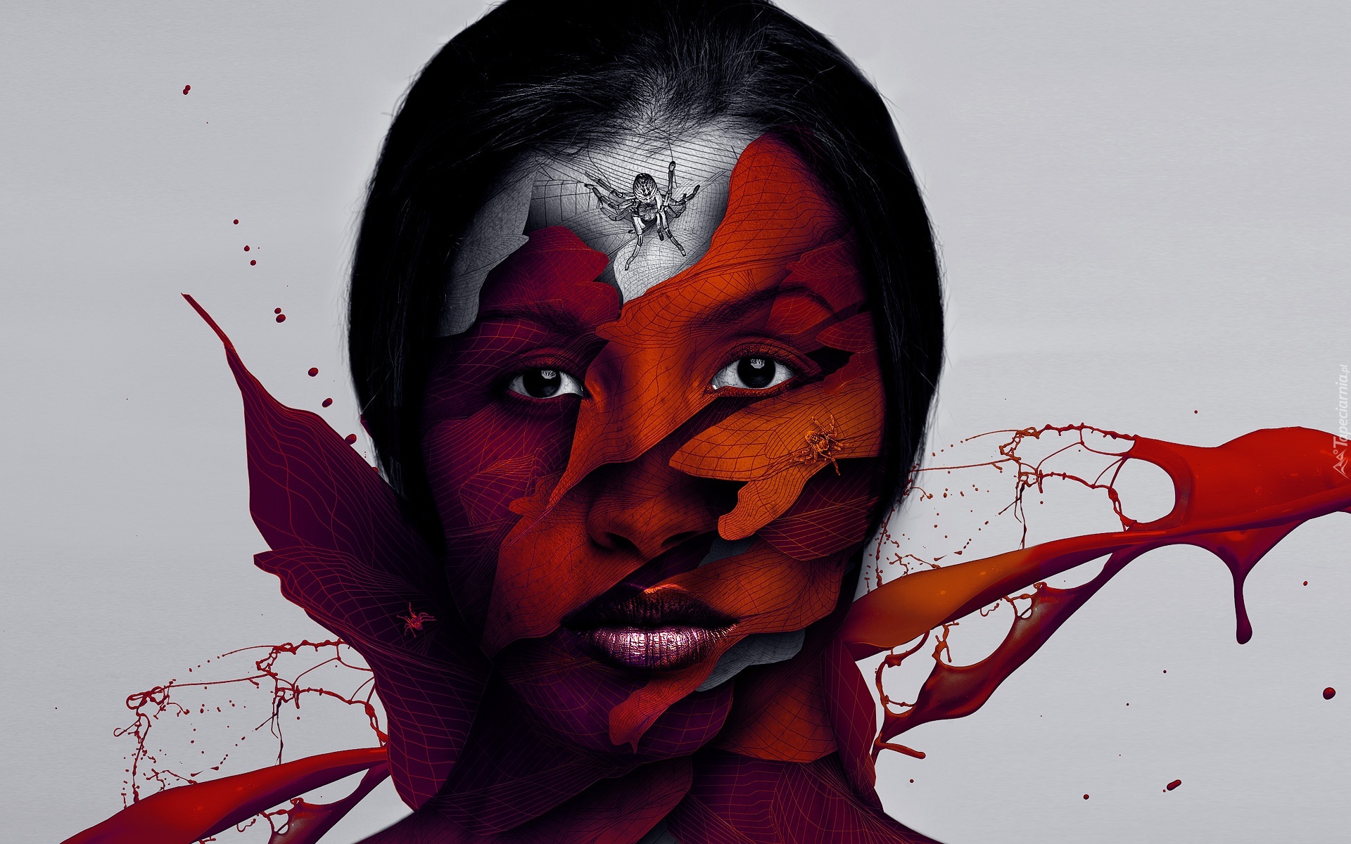 Edytor tapety: Dziewczyna, Pajęczyna, Pająki, Grafika