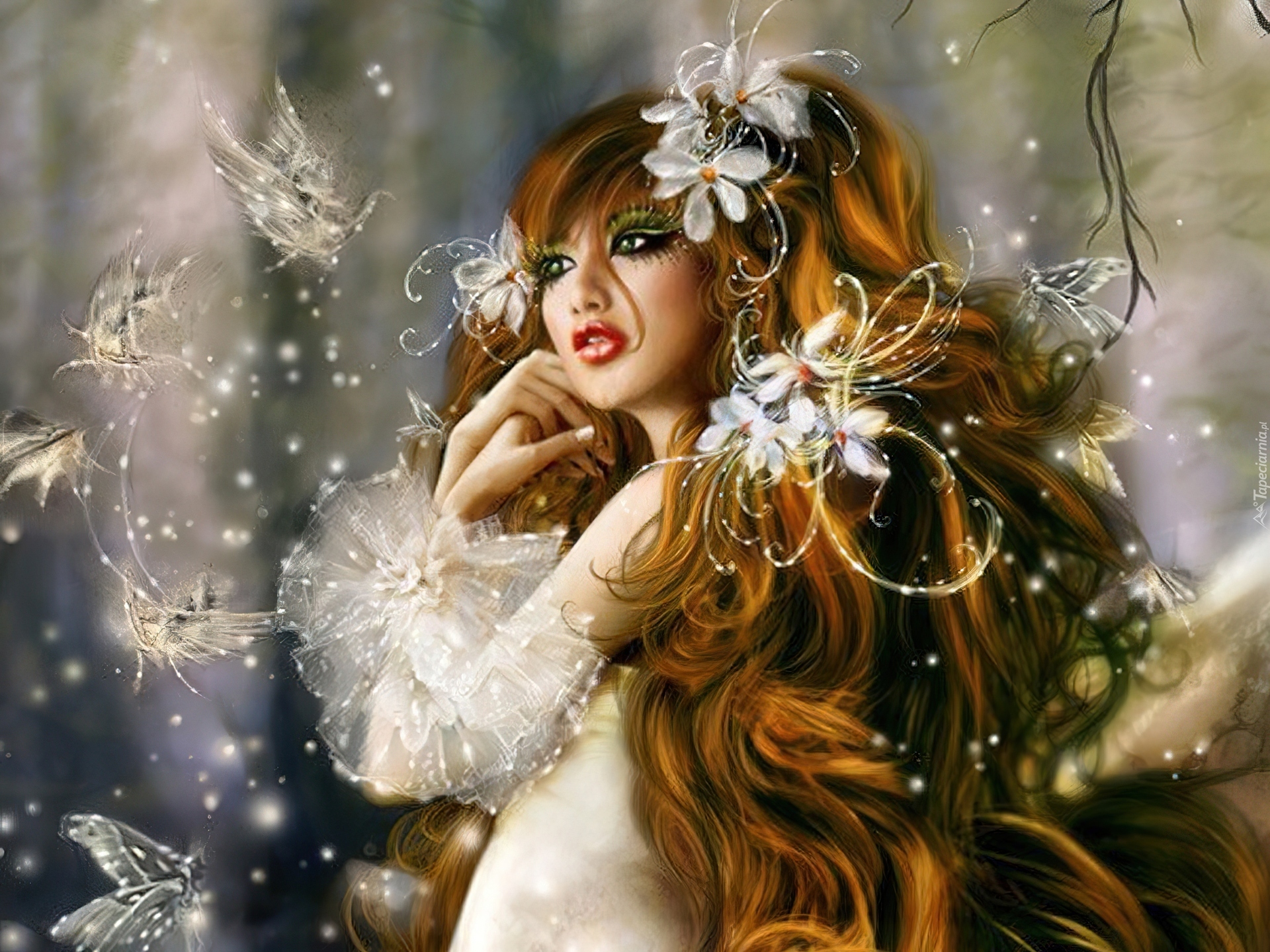 Edytor tapety: Dziewczyna, Świetliki, Kwiaty