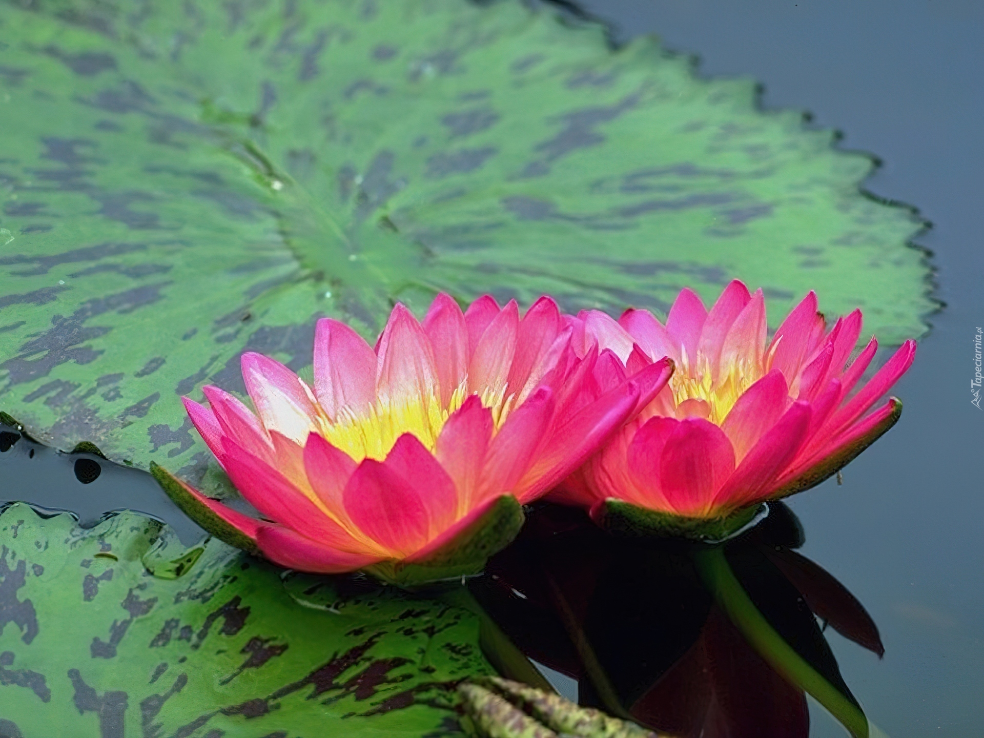 Edytor tapety: Dwie, Lilie, Woda, Liście