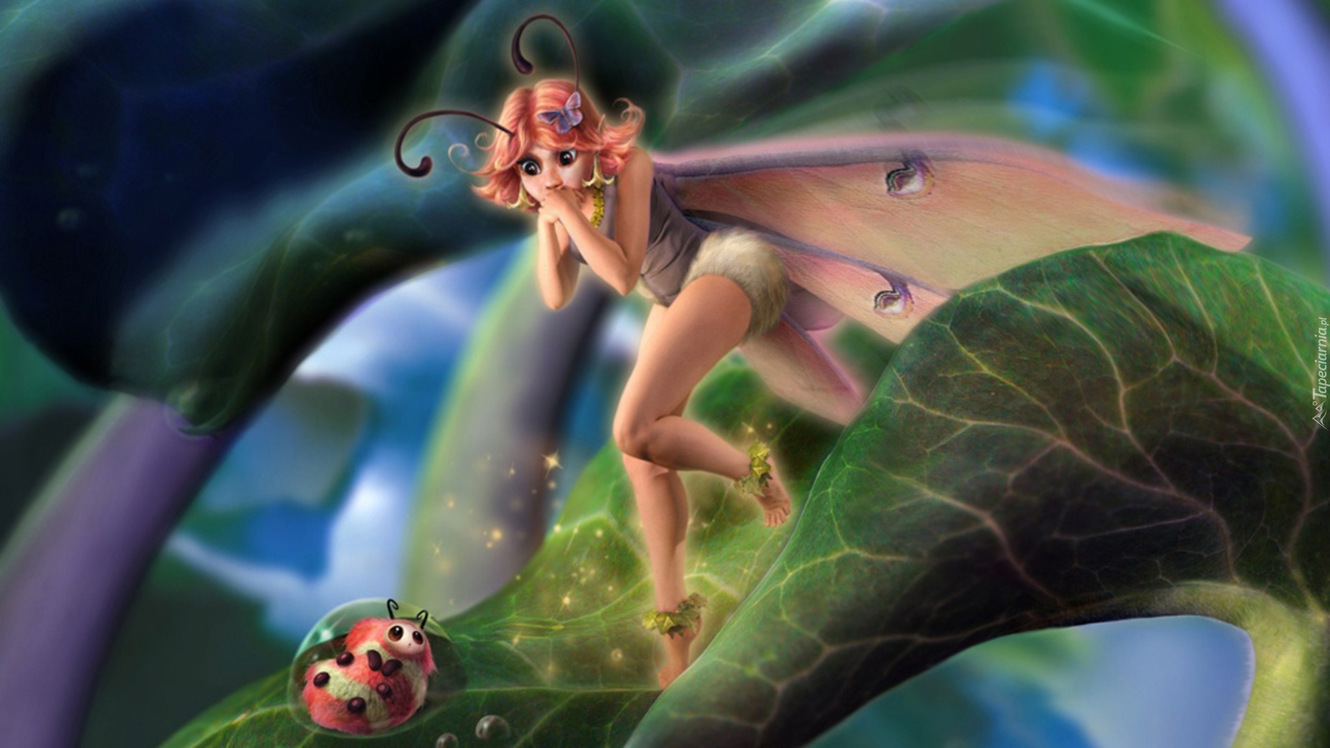 Edytor tapety: Dziewczyna, Motyl, Liść