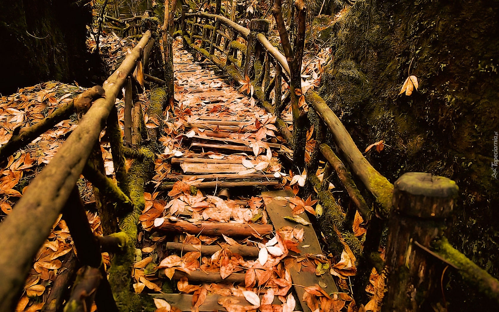 Edytor tapety: Widok, Schody, Liście, Jesień