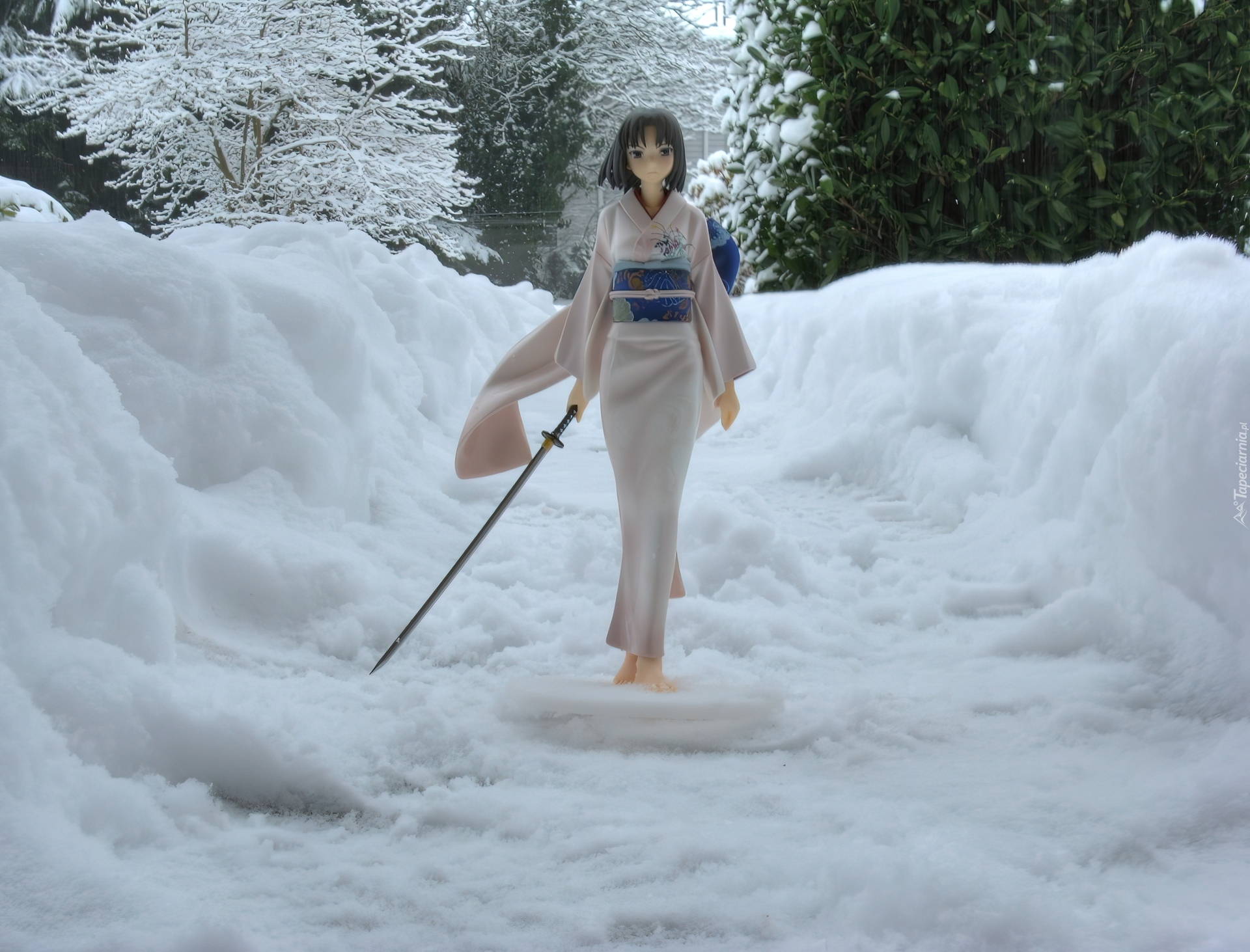 Edytor tapety: Dziewczyna, Śnieg, Zima, Figurka, Anime