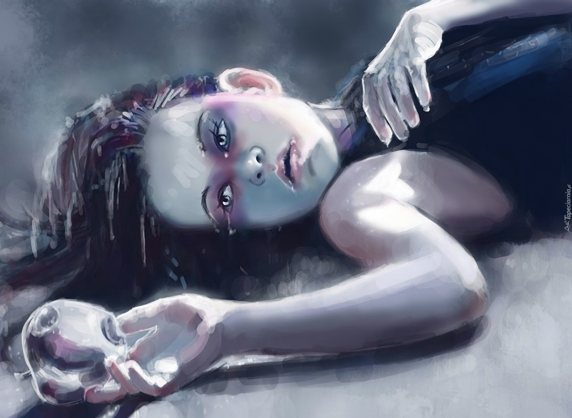 Edytor tapety: Płacząca, Dziewczyna, Dłoń, Jabłko