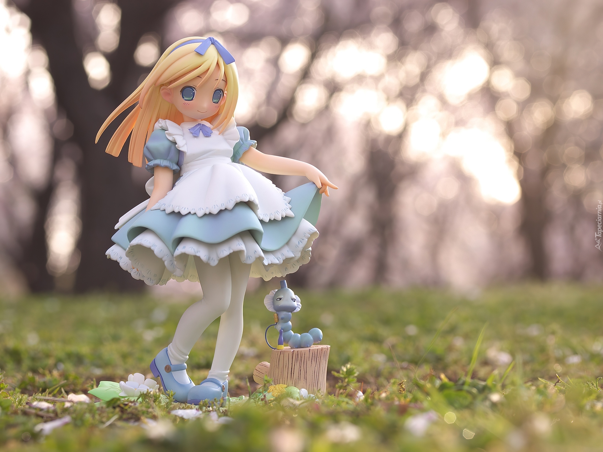 Edytor tapety: Śliczna, Figurka, Anime, Blondynka, Łąka, Sukienka