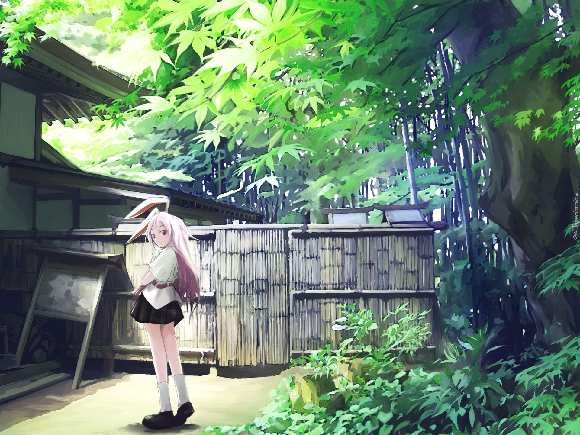 Edytor tapety: Dziewczyna, Anime, Spódniczka, Las, Dom