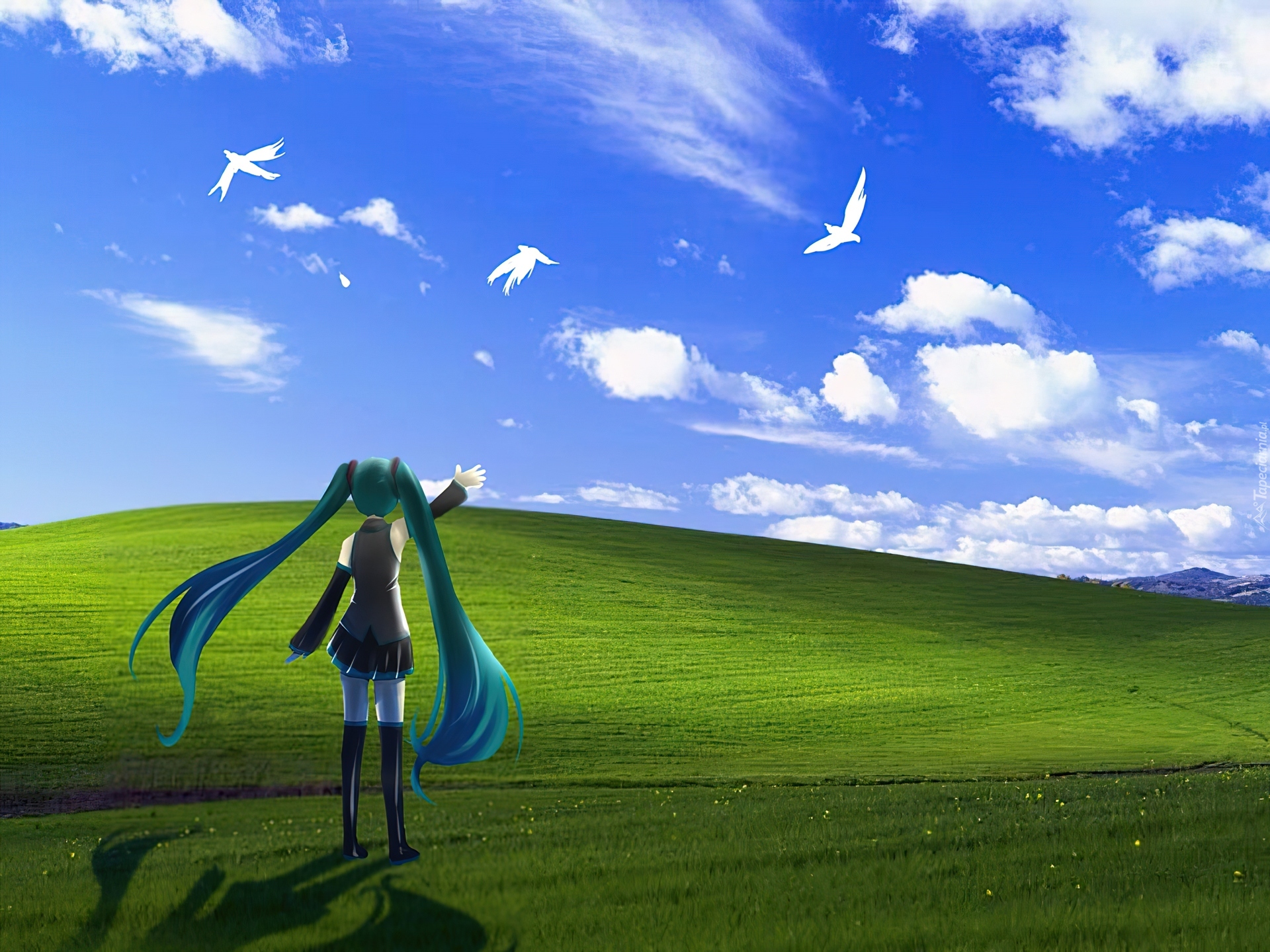 Edytor tapety: Miku Hatsune, Vocaloid, Windows XP, Ptaki