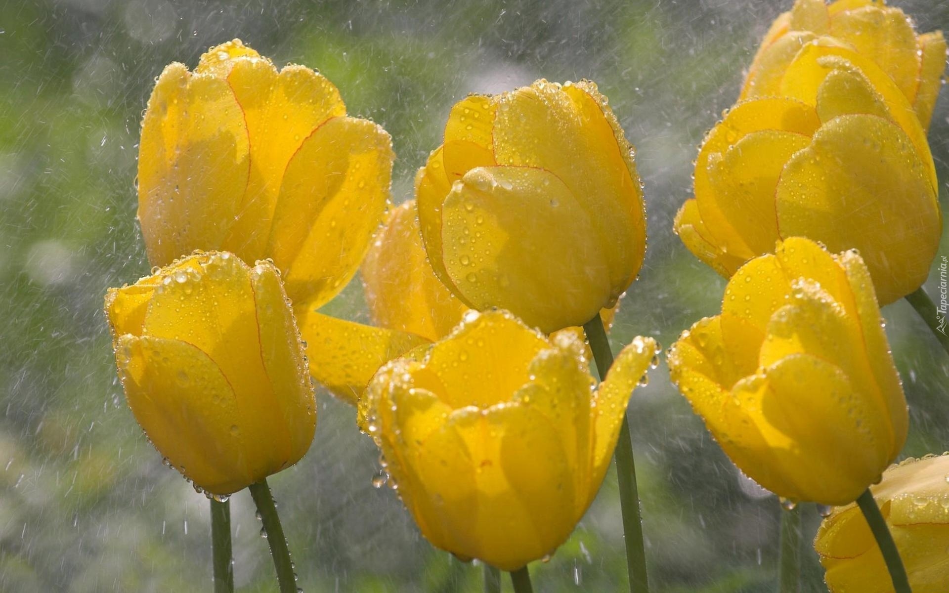 Edytor tapety: Żółte, Tulipany, Deszcz