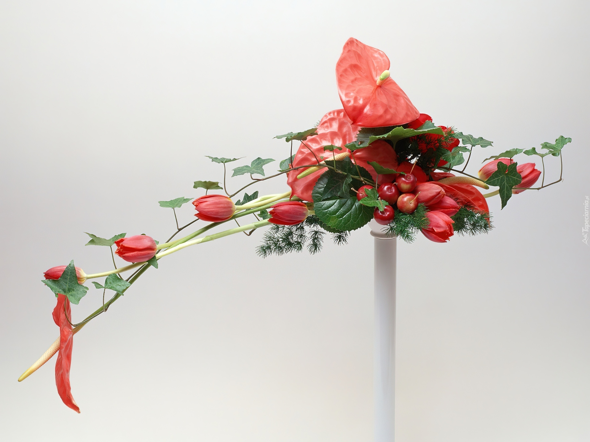 Edytor tapety: Czerwona, Kompozycja, Kwiatowa