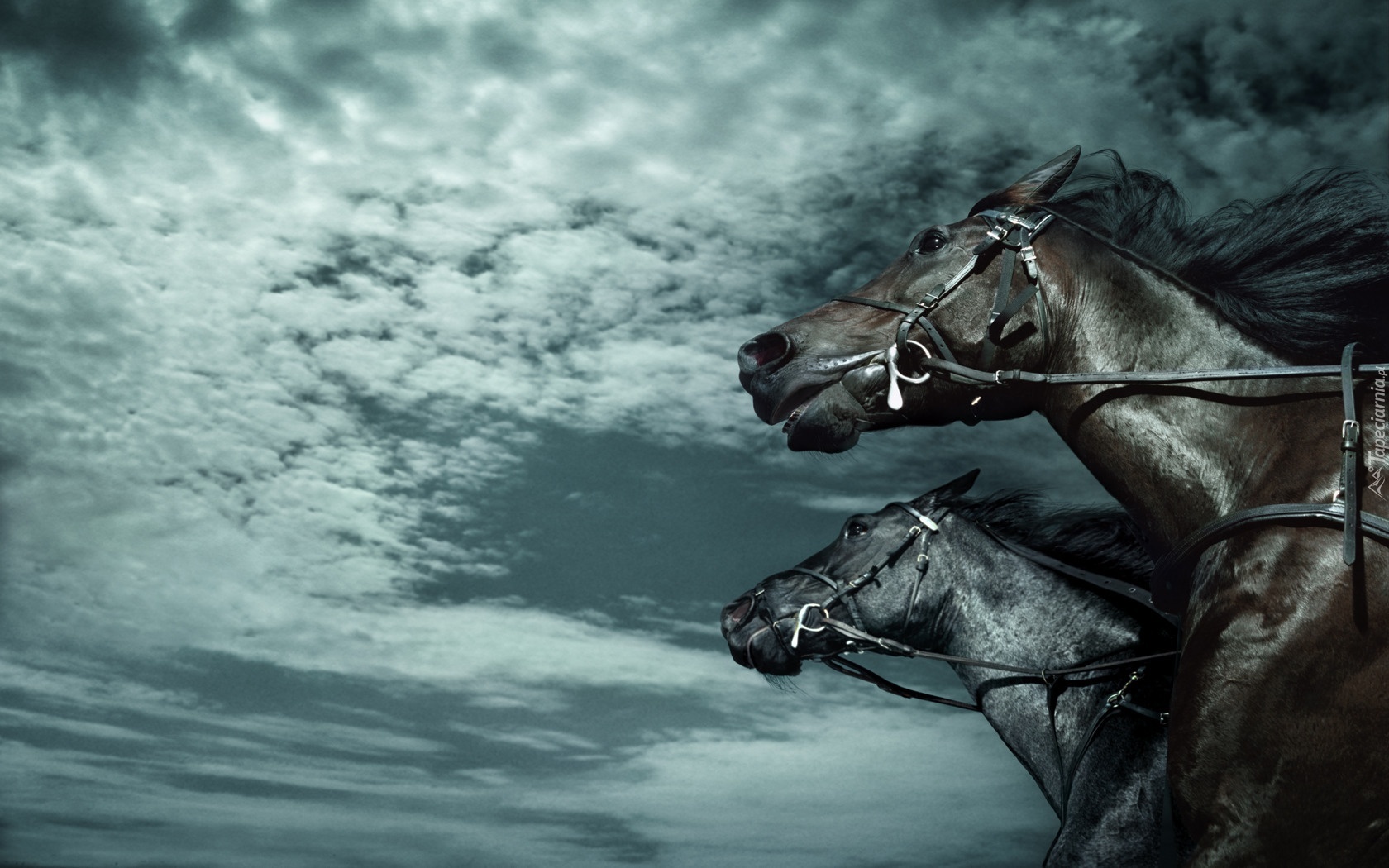 Edytor tapety: Dwa, Czarne, Konie, Niebo