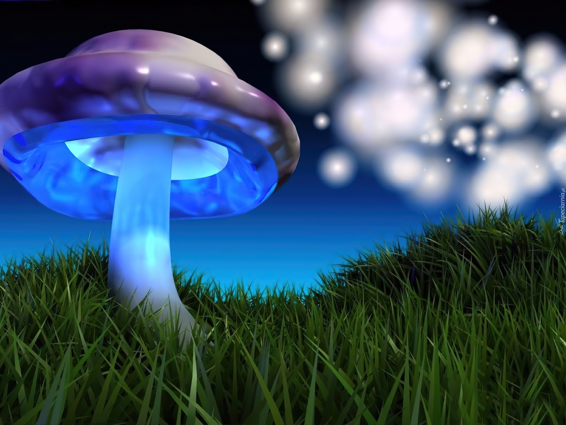 Edytor tapety: Grzyb, Łąka, Noc, Fantasy