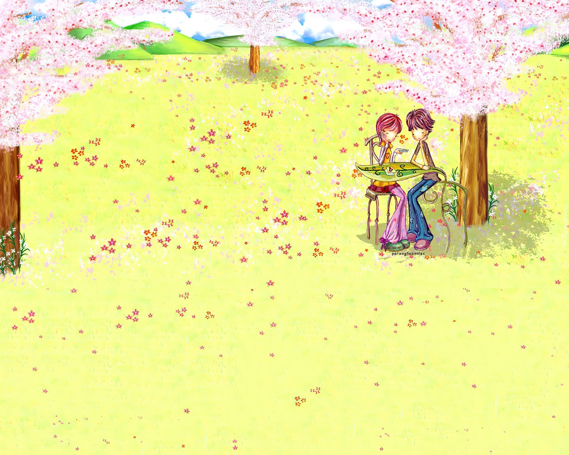 Edytor tapety: Zakochana, Para, Spotkanie, Sad