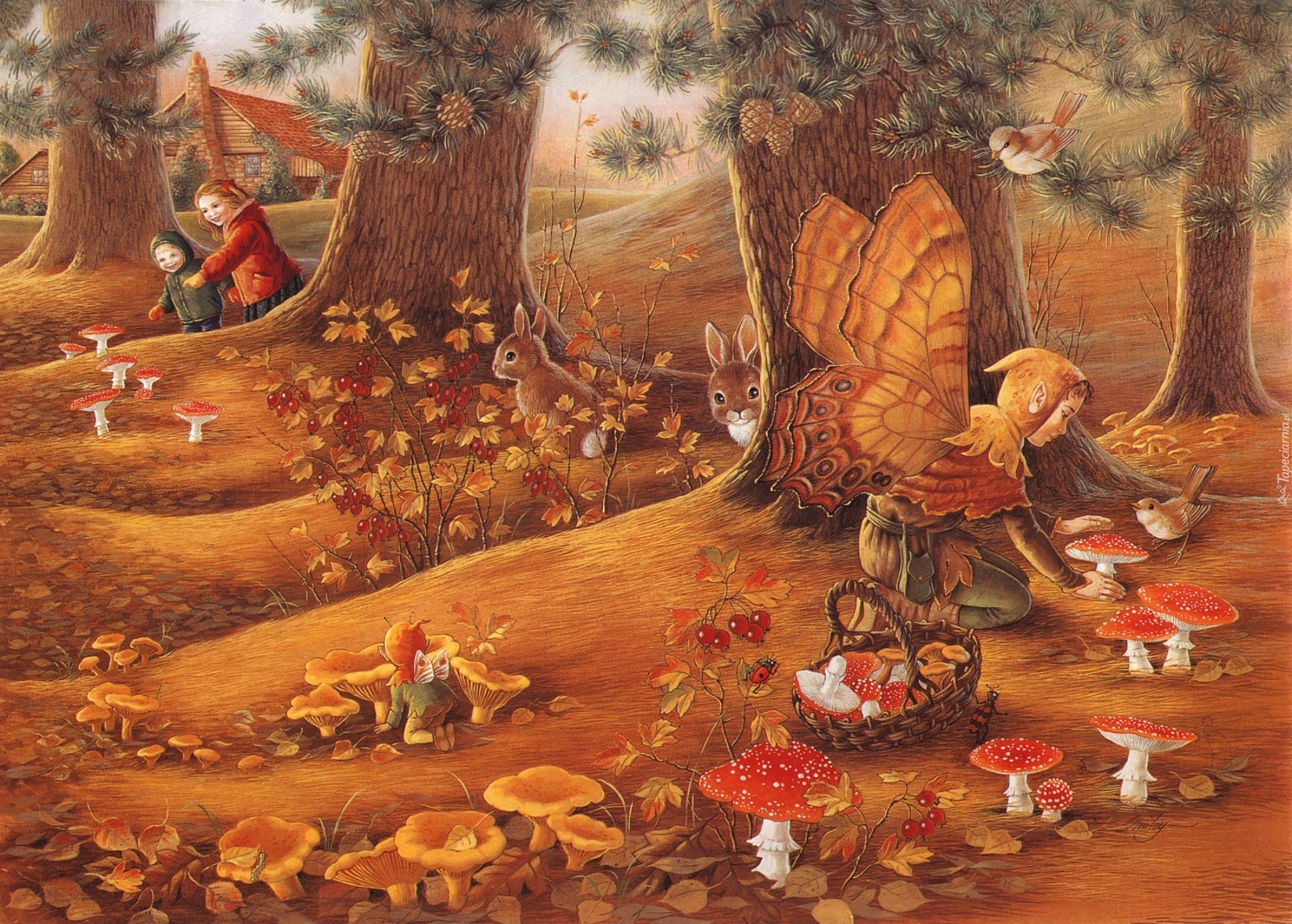 Edytor tapety: Jesień, Las, Grzyby, Elfy