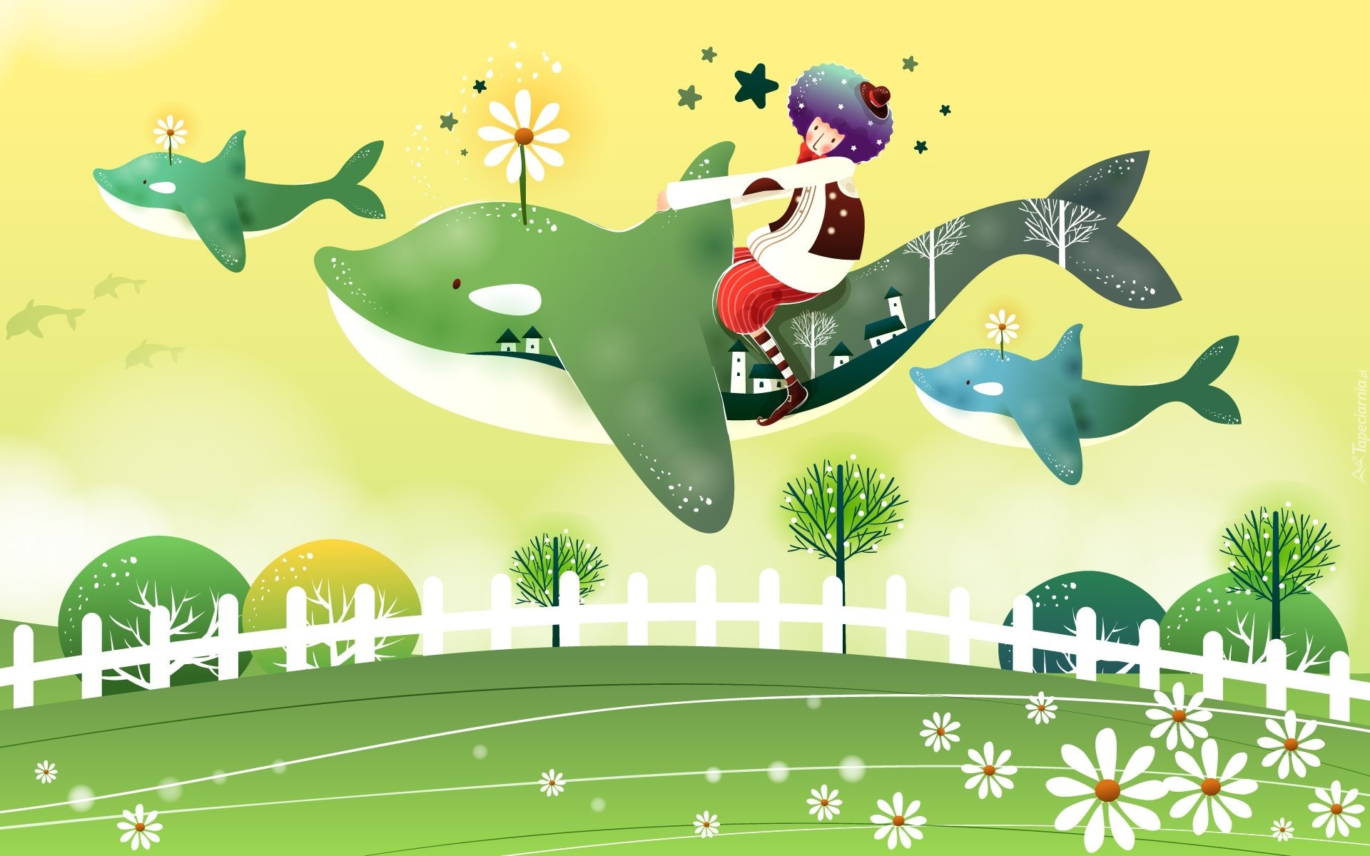 Edytor tapety: Pajacyk, Delfiny, Fantasy
