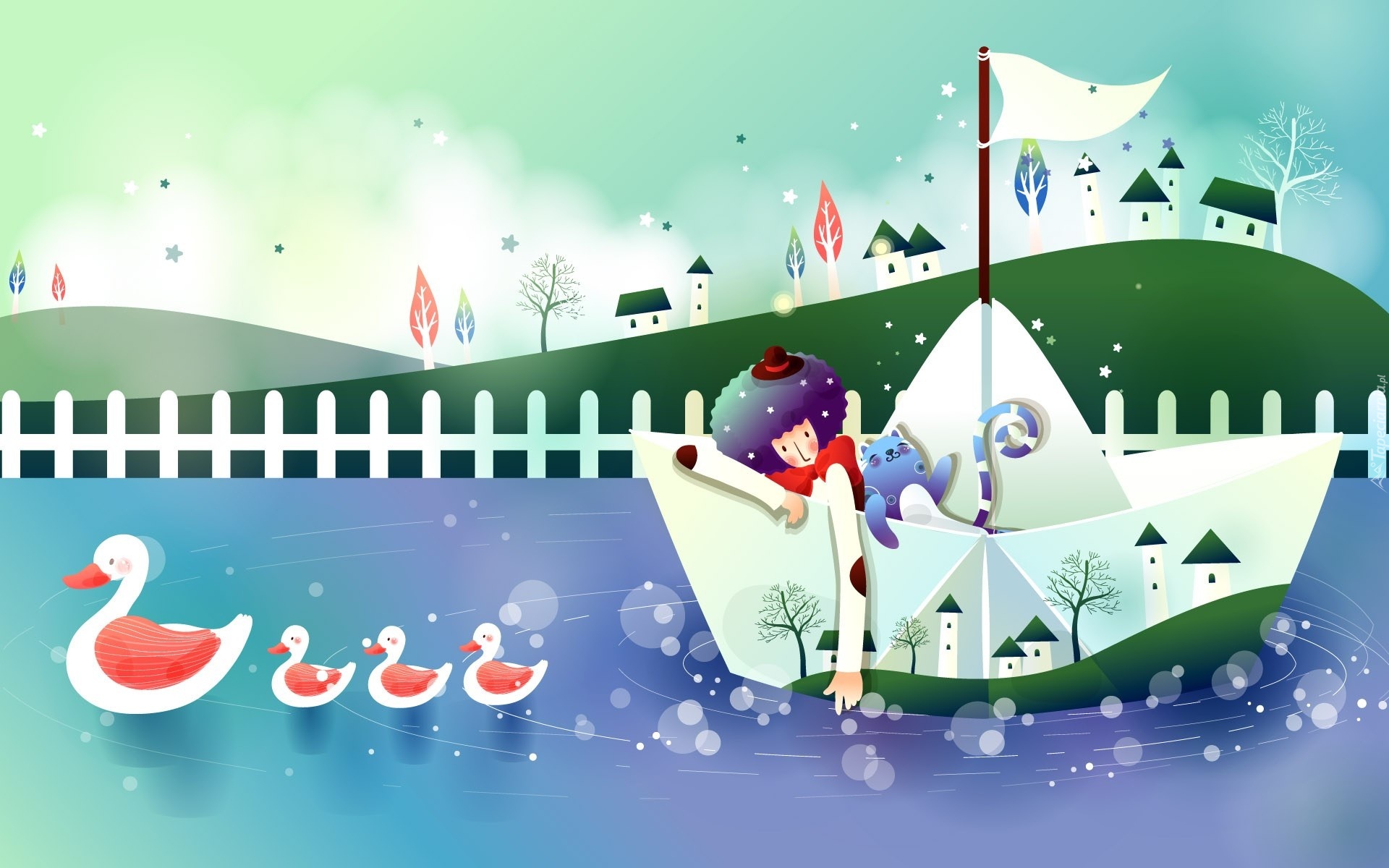 Edytor tapety: Pajacyk, Rzeka, Łódeczka, Papierowa, Fantasy