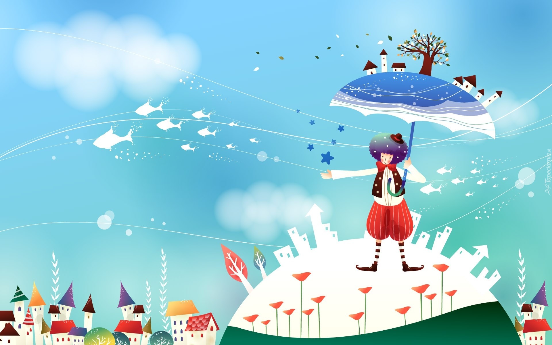 Edytor tapety: Pajacyk, Parasol, Rybki, Fantasy, Dla dzieci