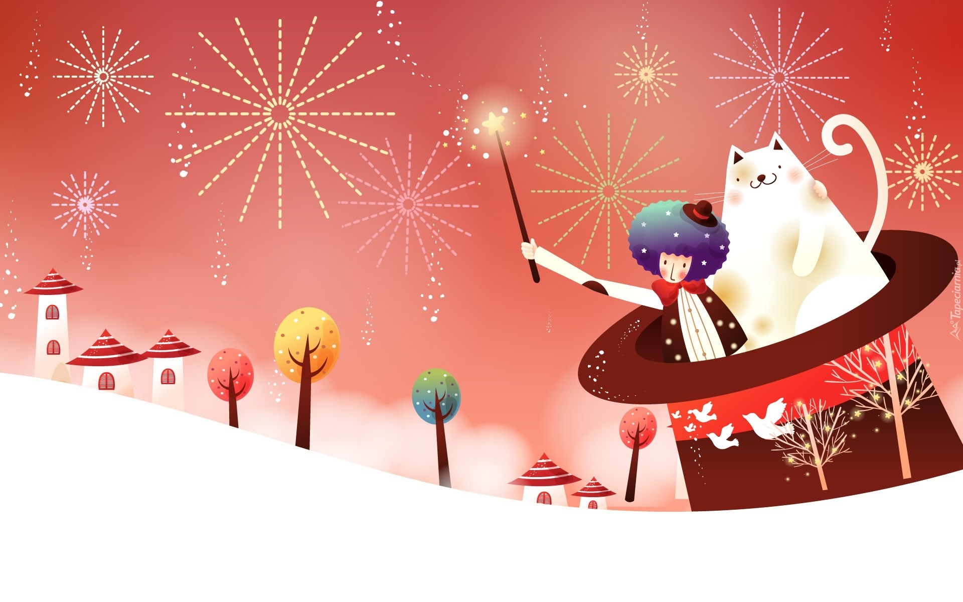 Edytor tapety: Pajacyk, Kot, Kapelusz, Różdżka