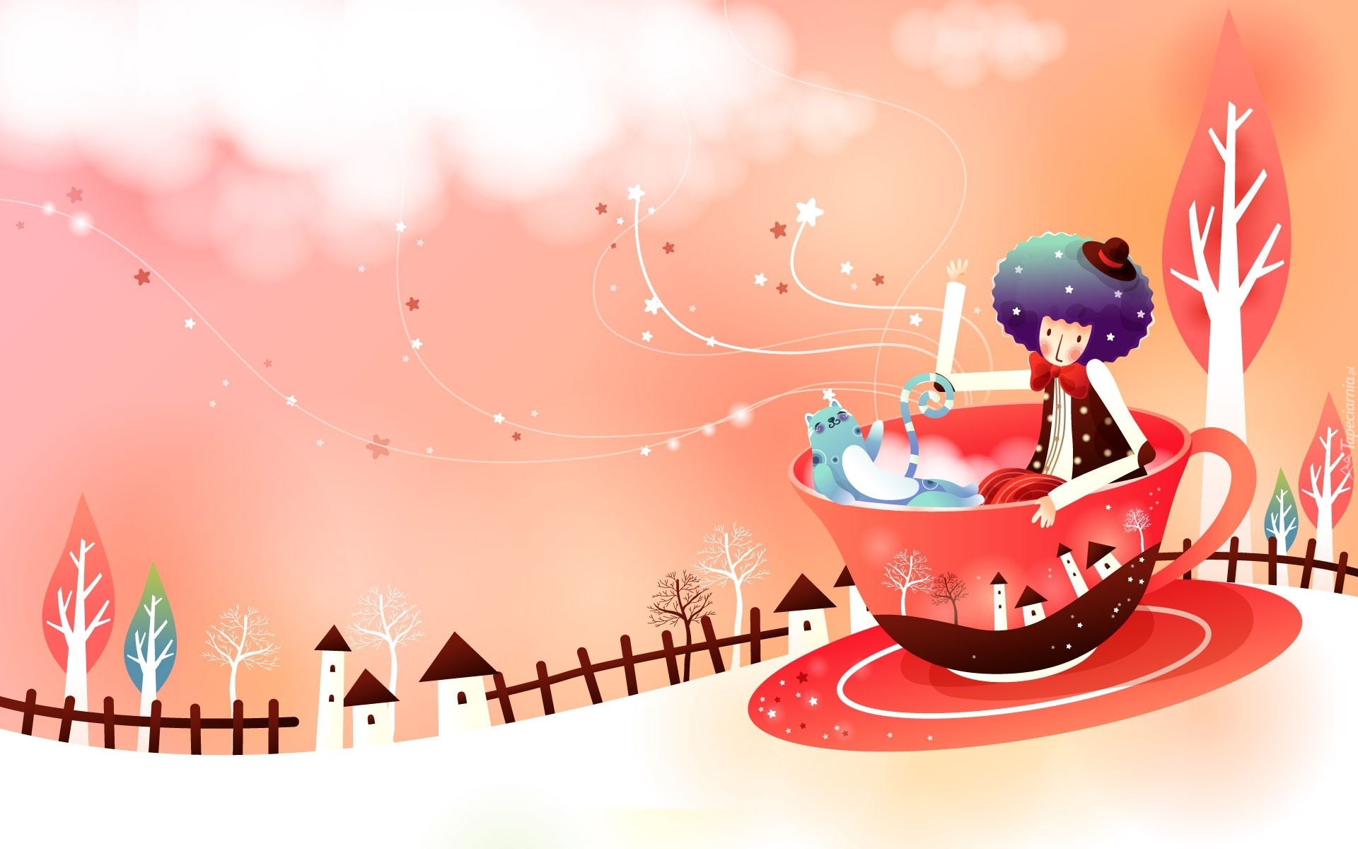Edytor tapety: Pajacyk, Kot, Filiżanka