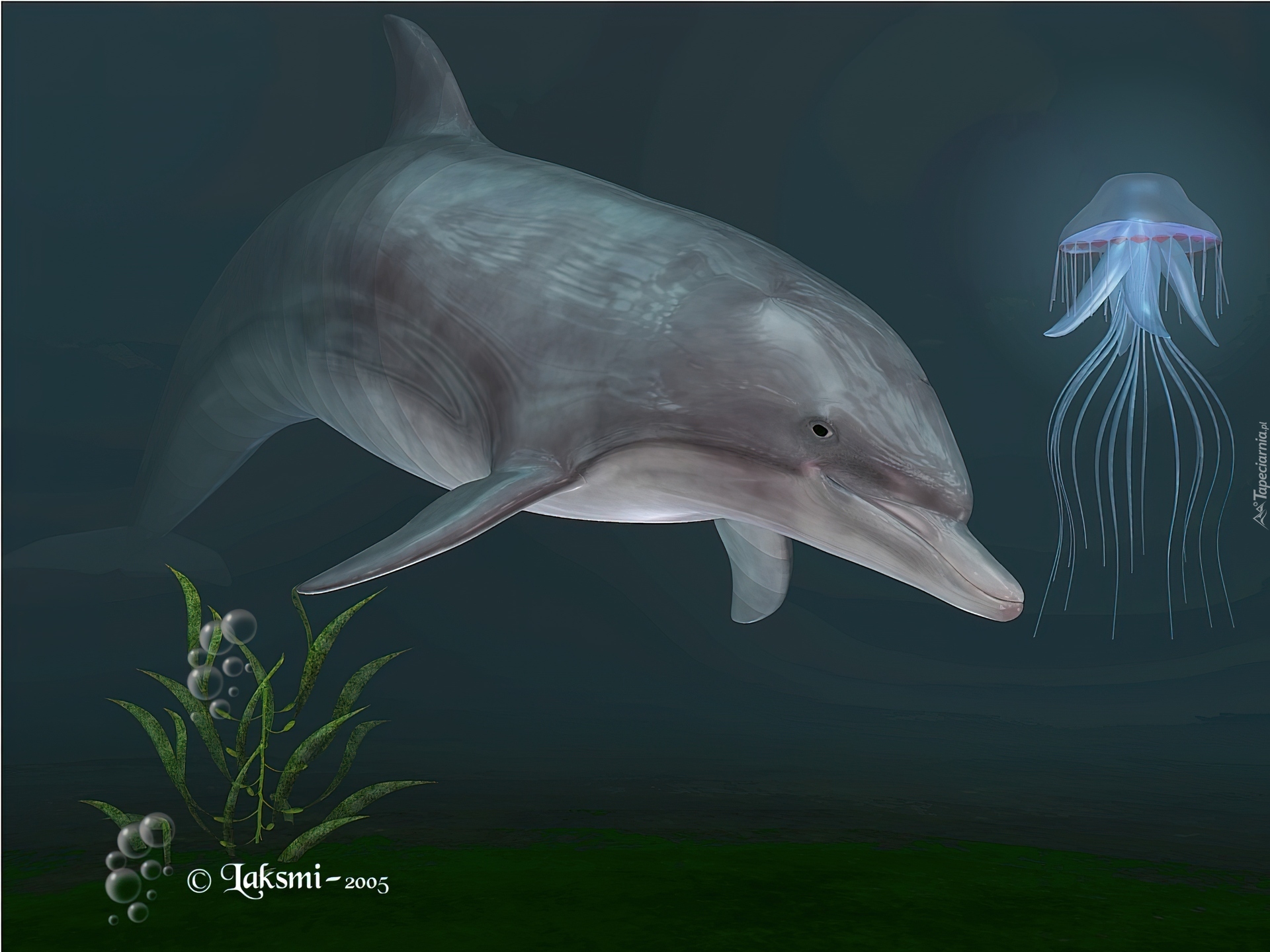 Edytor tapety: Delfin, Meduza, 3D