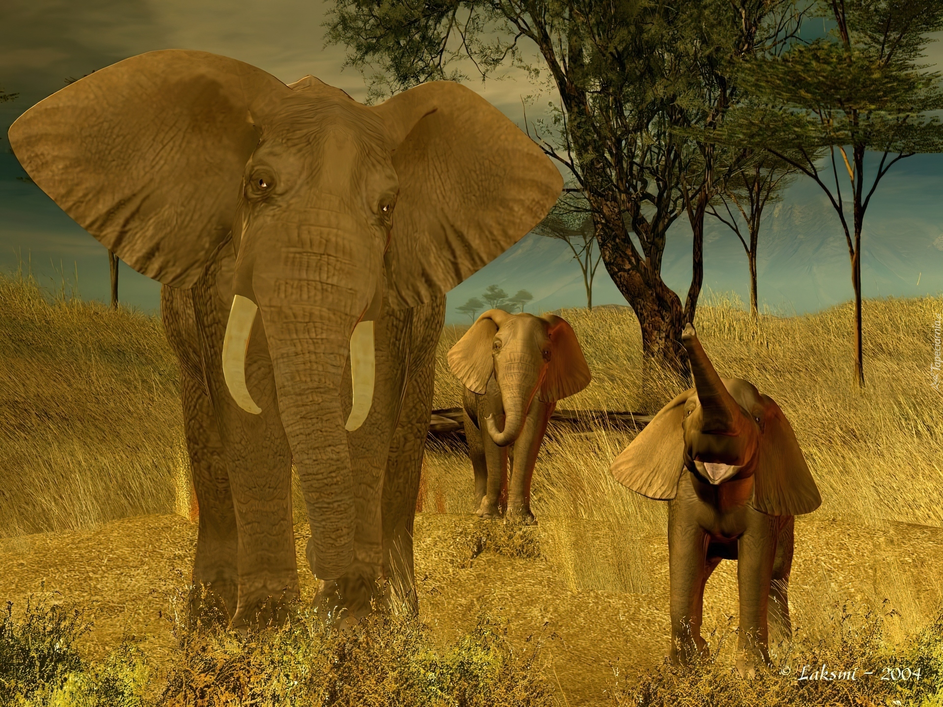 Edytor tapety: Trzy, Słonie, Rodzina, 3D