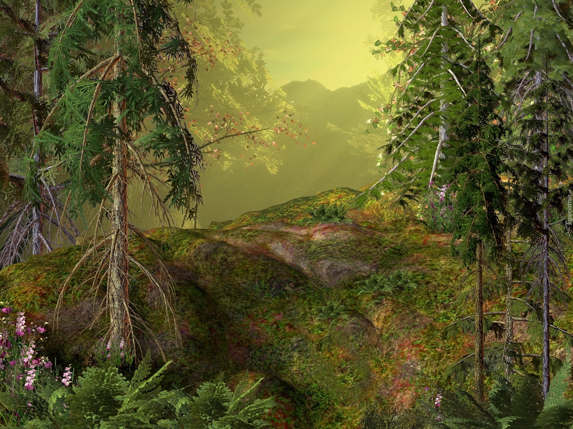 Edytor tapety: Drzewa, Las, Góry, 3D