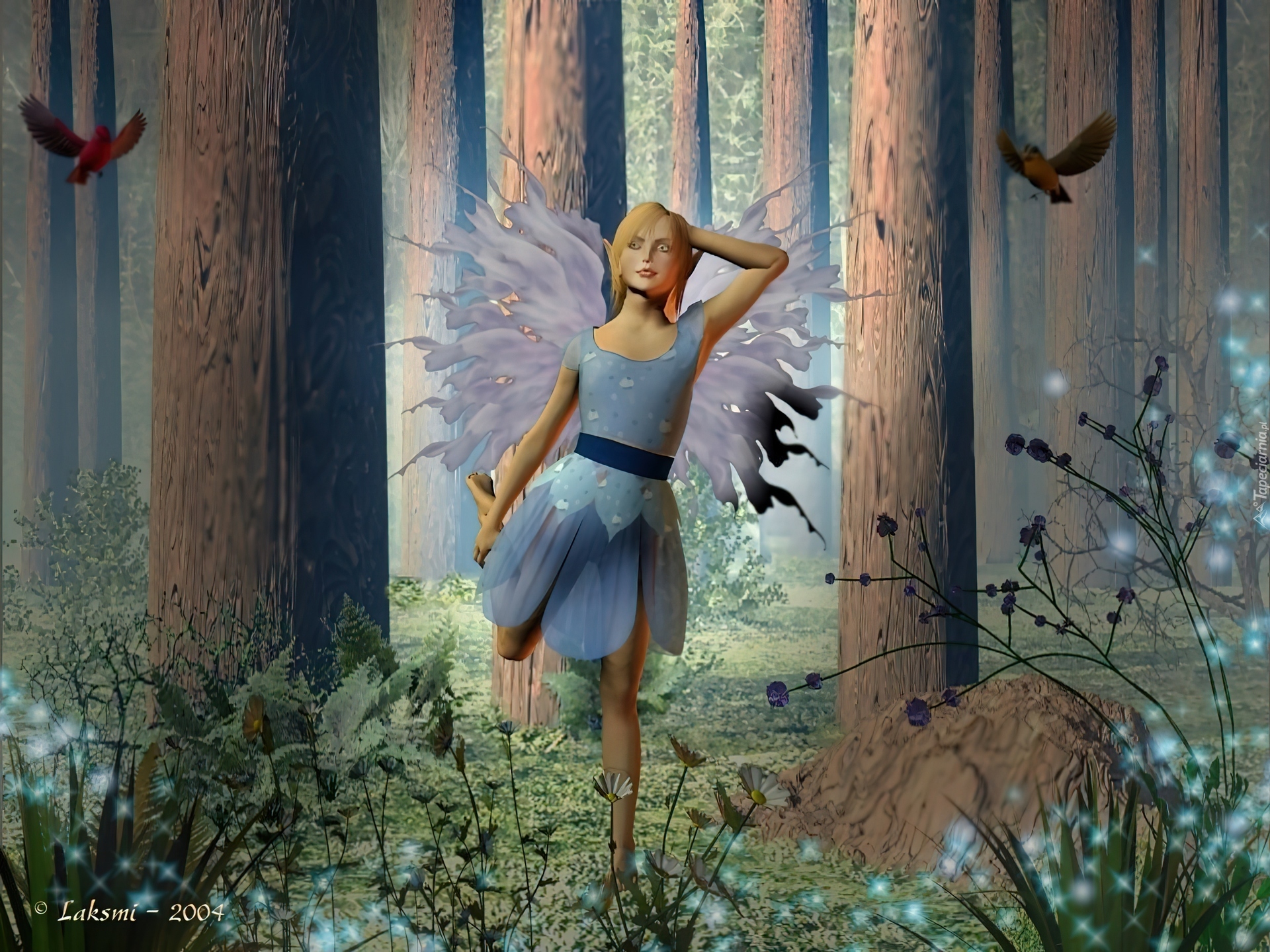 Edytor tapety: Elf, Zabawa, Las, 3D, Fantasy