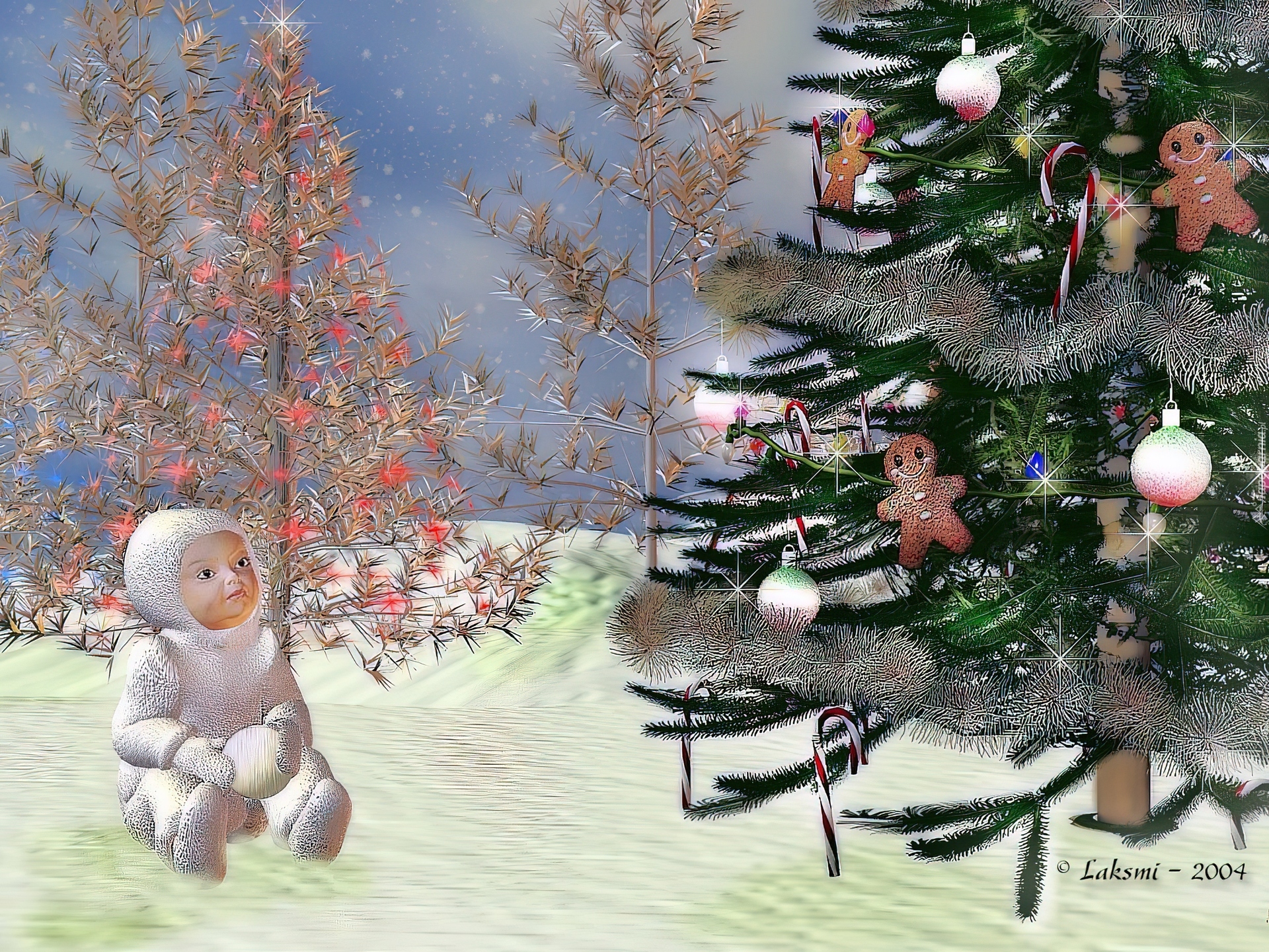 Edytor tapety: Dziecko, Śnieg, Choinka, 3D