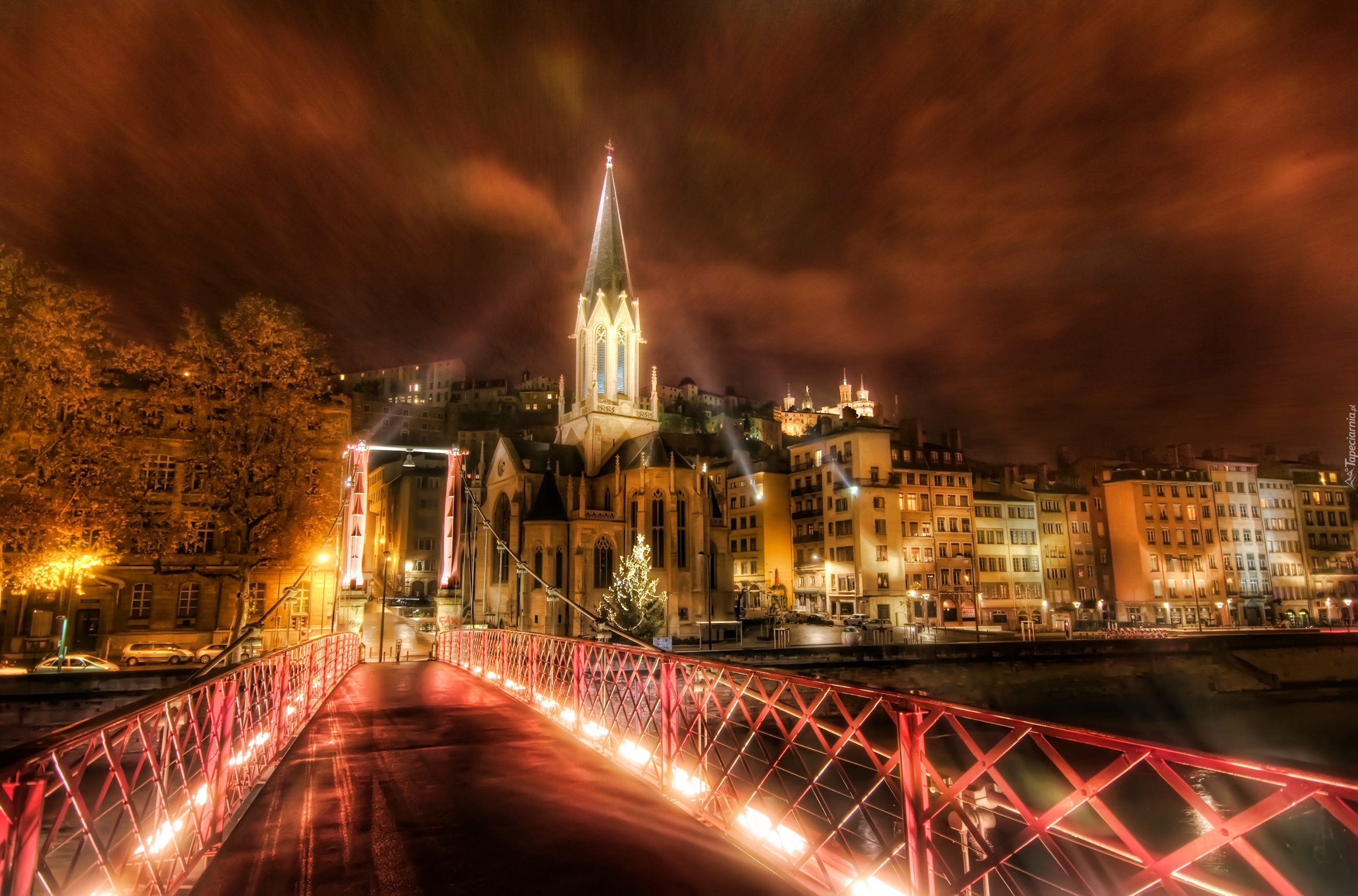 Edytor tapety: Most, Światła, Wieczór, Lyon, Francja