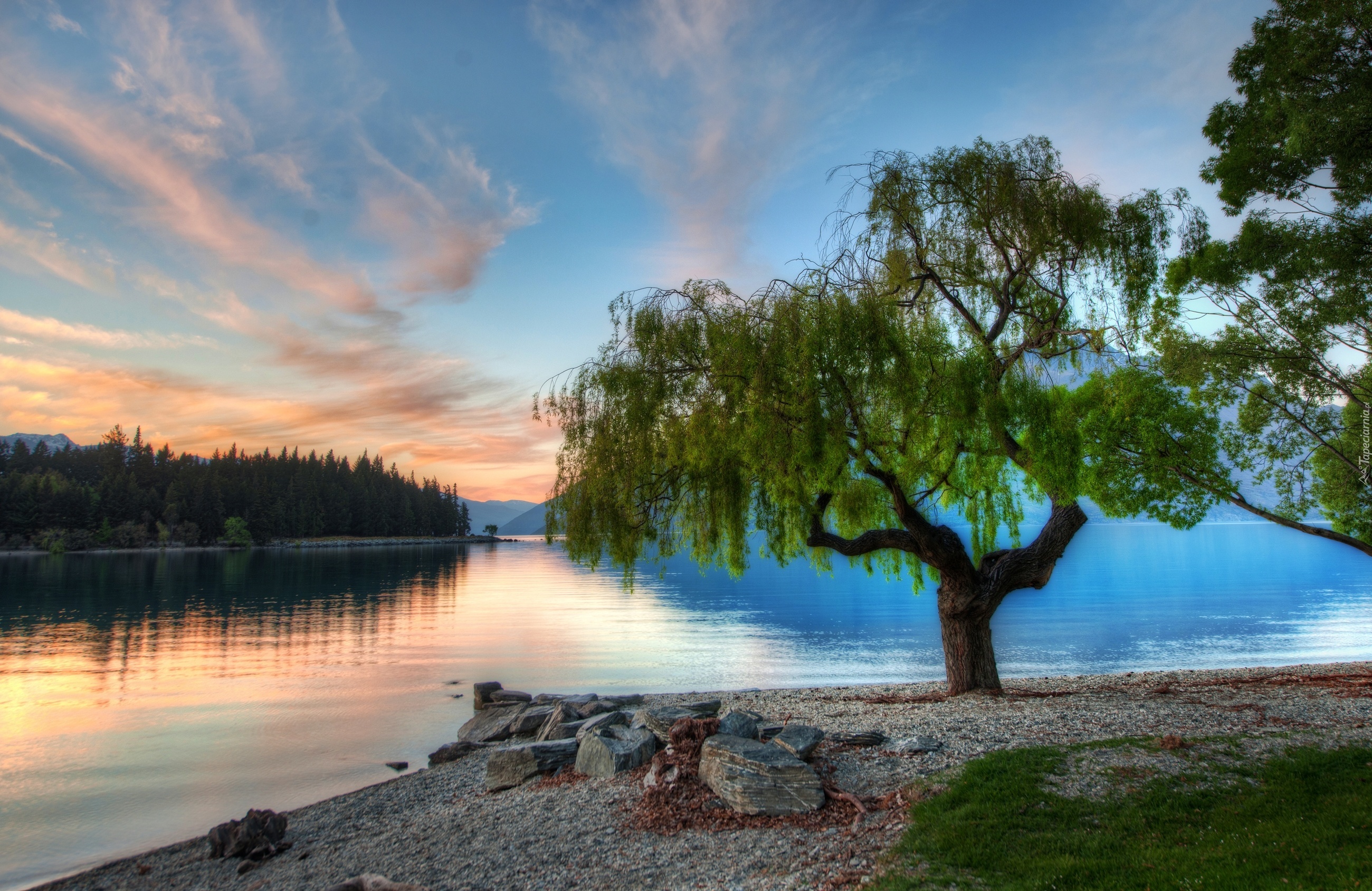 Edytor tapety: Drzewo, Jezioro, Serene, Nowa Zelandia