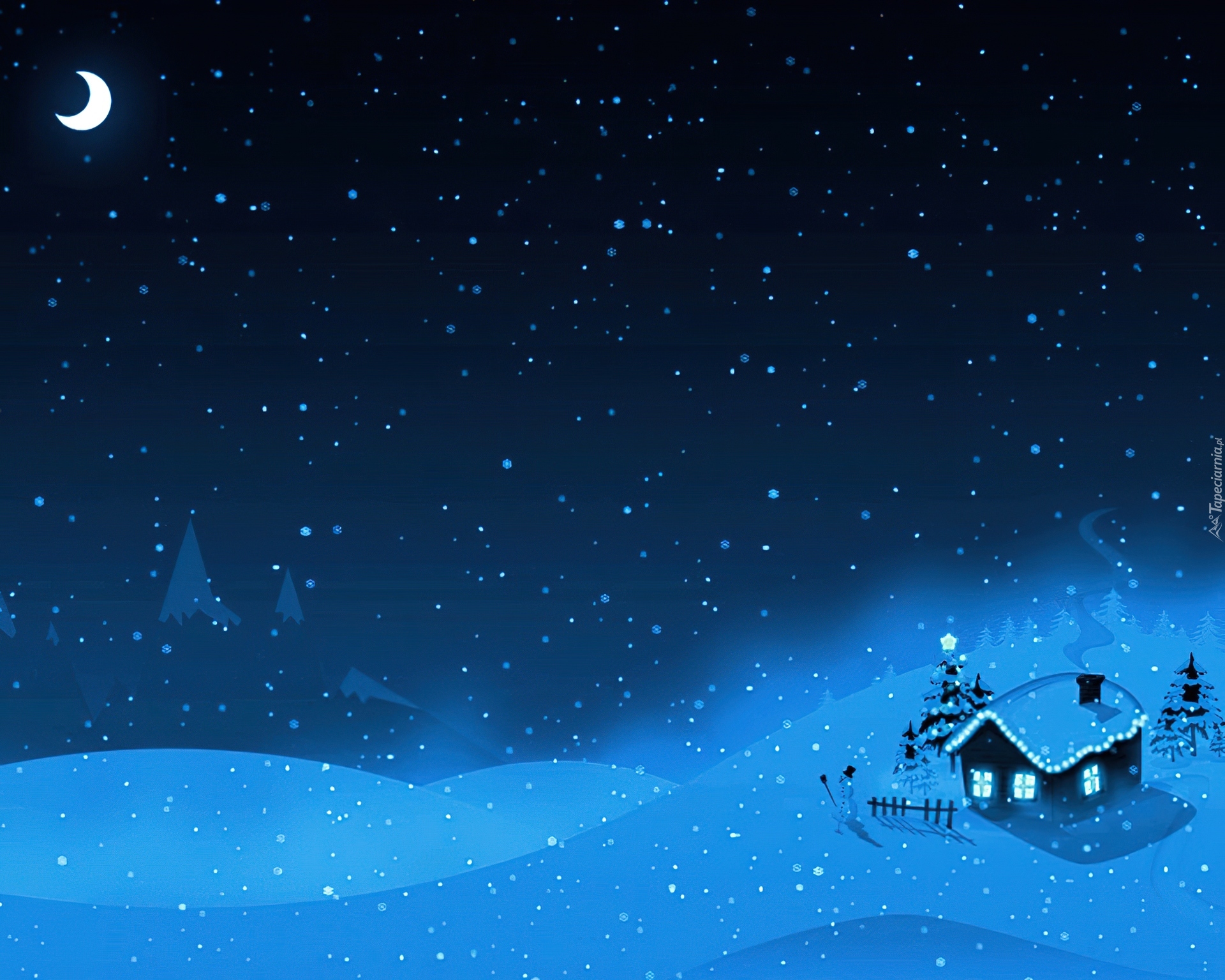Edytor tapety: Zima, Śnieg, Noc, Domek