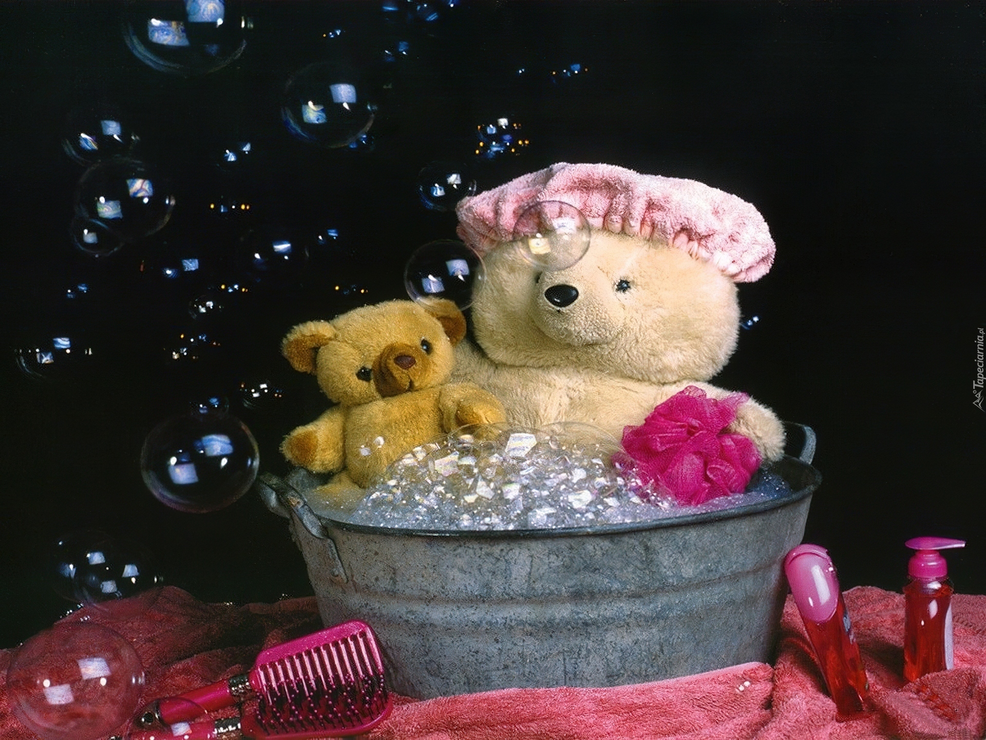 Edytor tapety: Dwa, Misie, Kąpiel