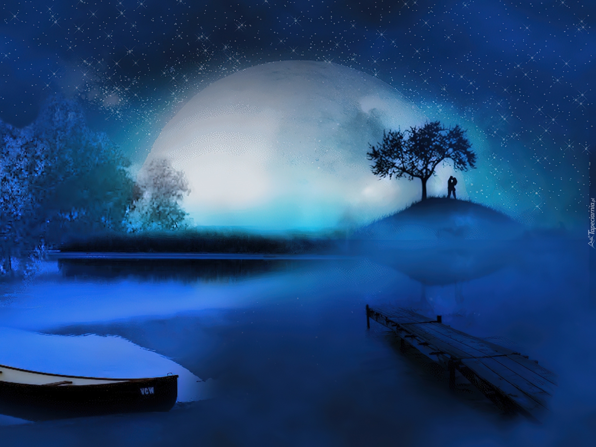 Edytor tapety: Para, Zakochanych, Noc, Jezioro
